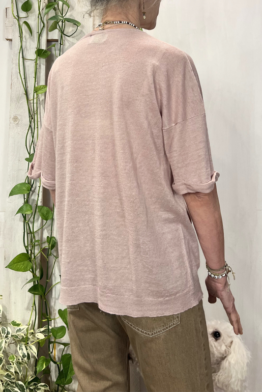 T-shirt in maglia lino e seta