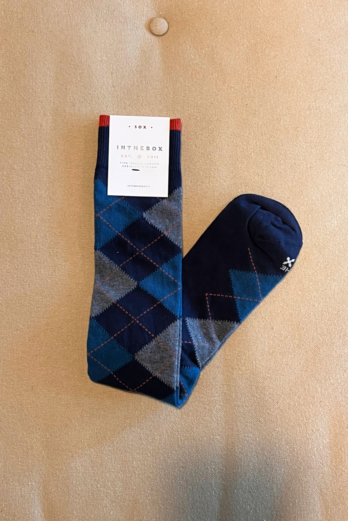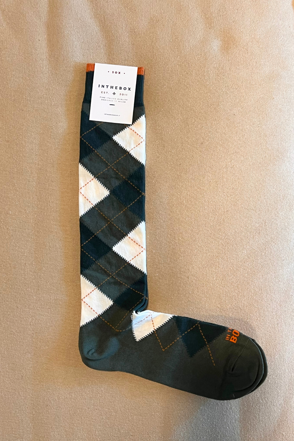 Calzino a quadri. Composizione 80% cotone, 18% poliammide, 2% elastan. Taglia Unica che corrisponde ad L/XL e calza dal 40 al 46 IT