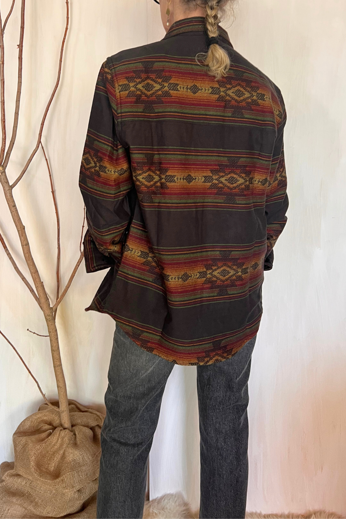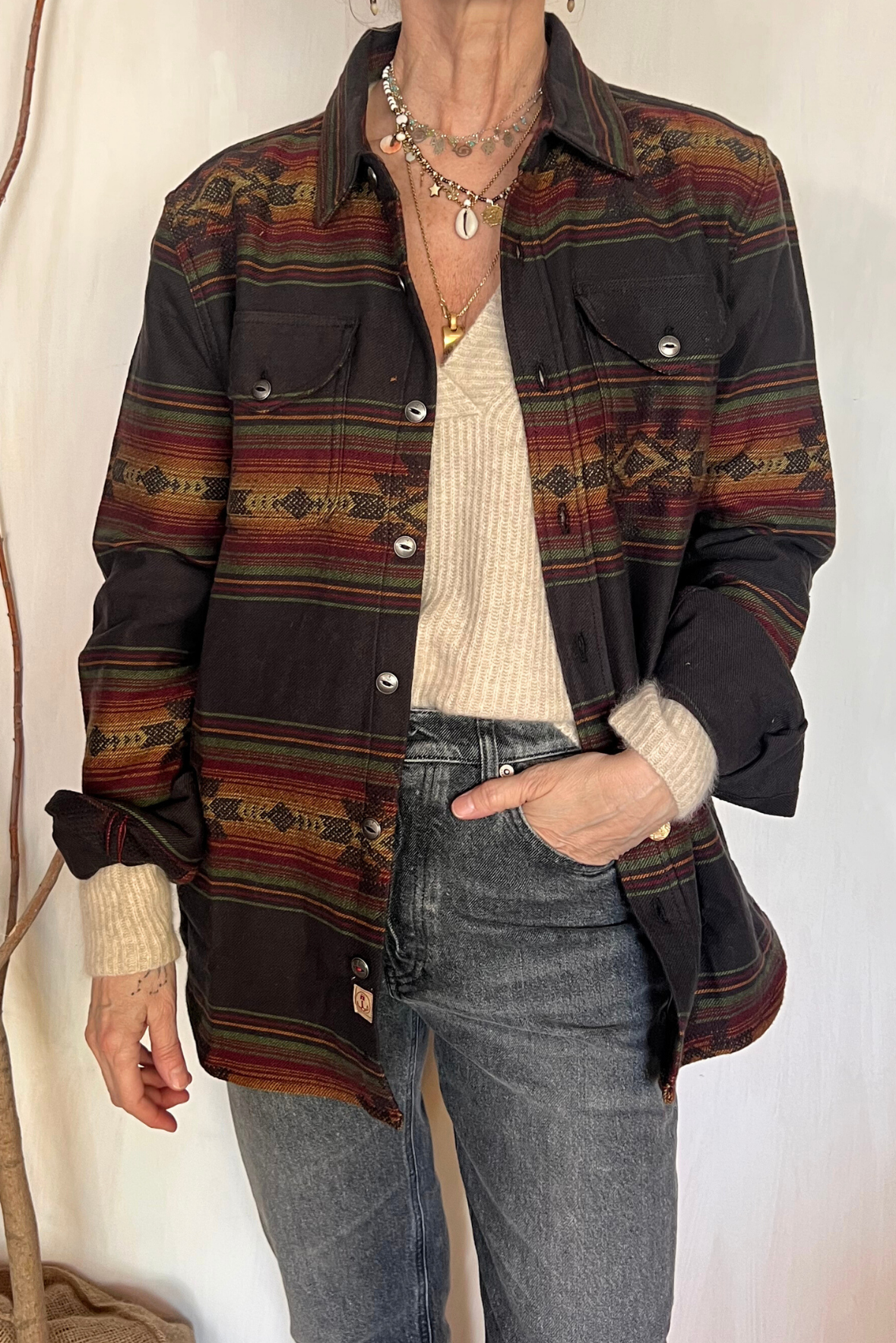 Sovracamicia oversize con motivo navajo. Due tasche con patta sul petto. Vestibilità over (taglia indossata XS su una 40IT). Composizione 100% cotone