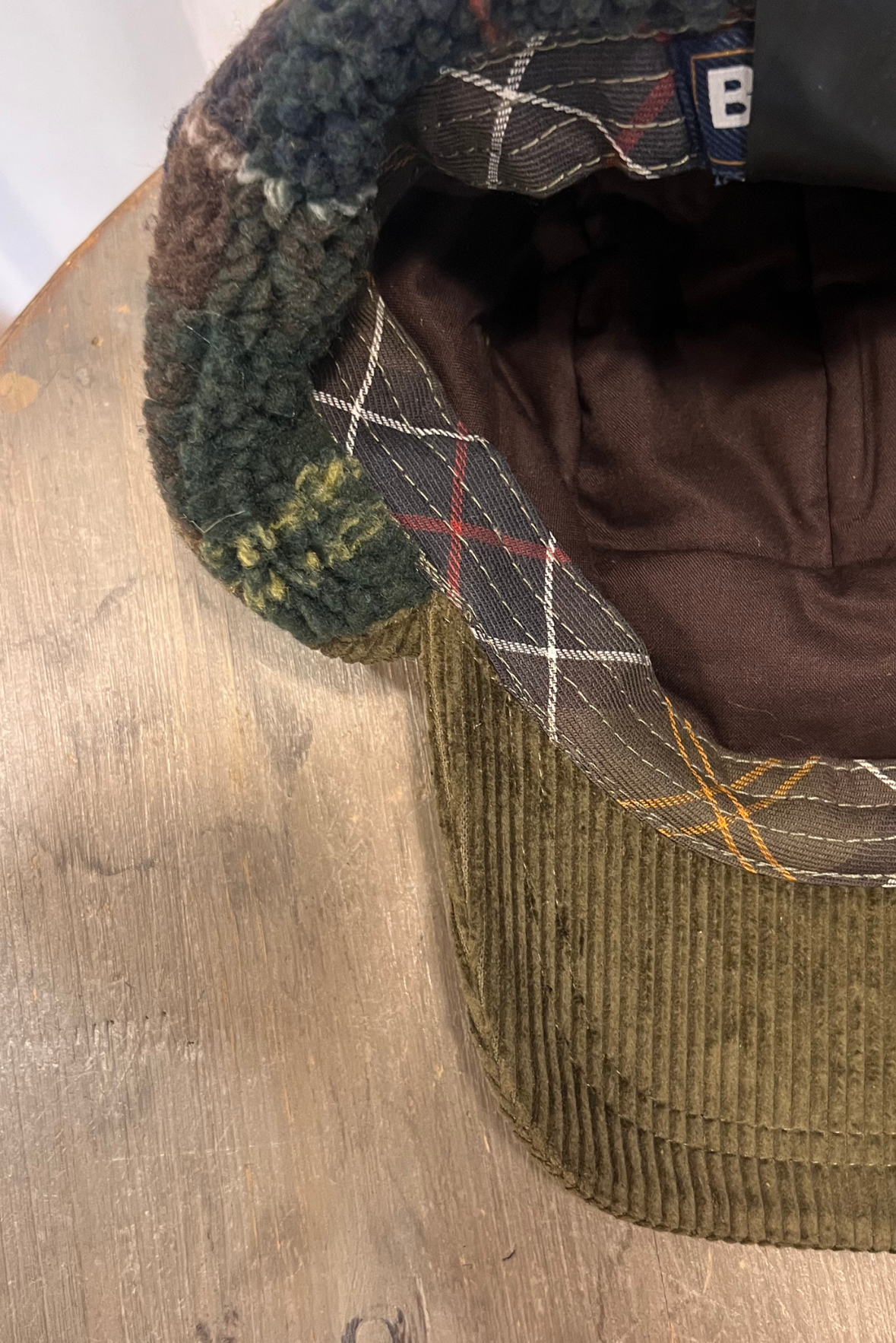 Cappello carpenter con orecchie (chiuse con bottone automatico) in velluto. Coulisse regolabile. Logo ricamato a contrasto sul davanti. Interno imbottito. Composizione 100% cotone