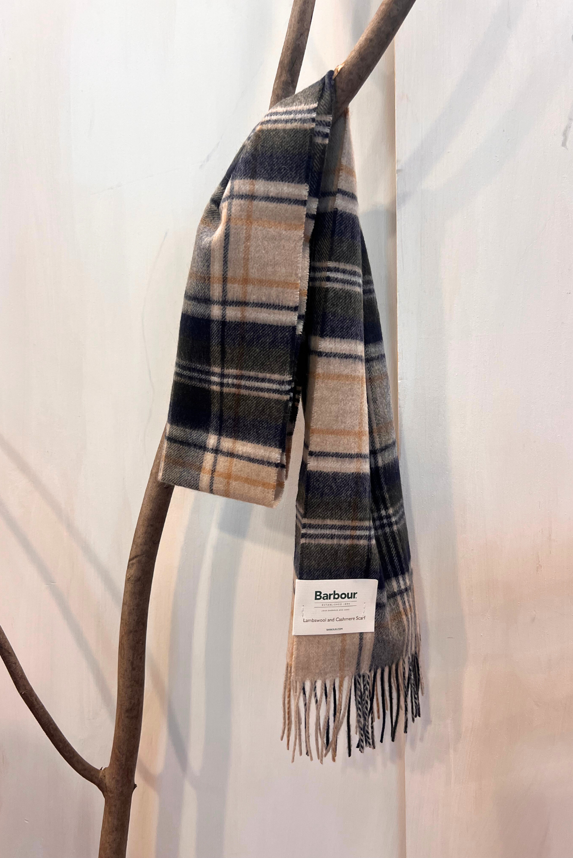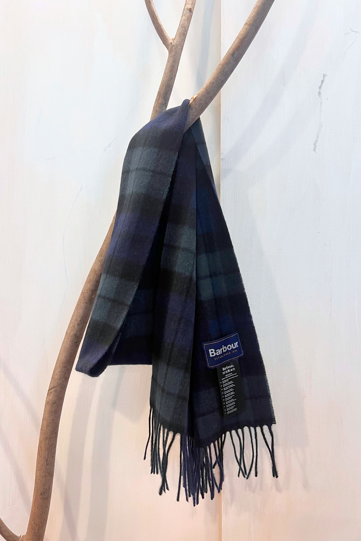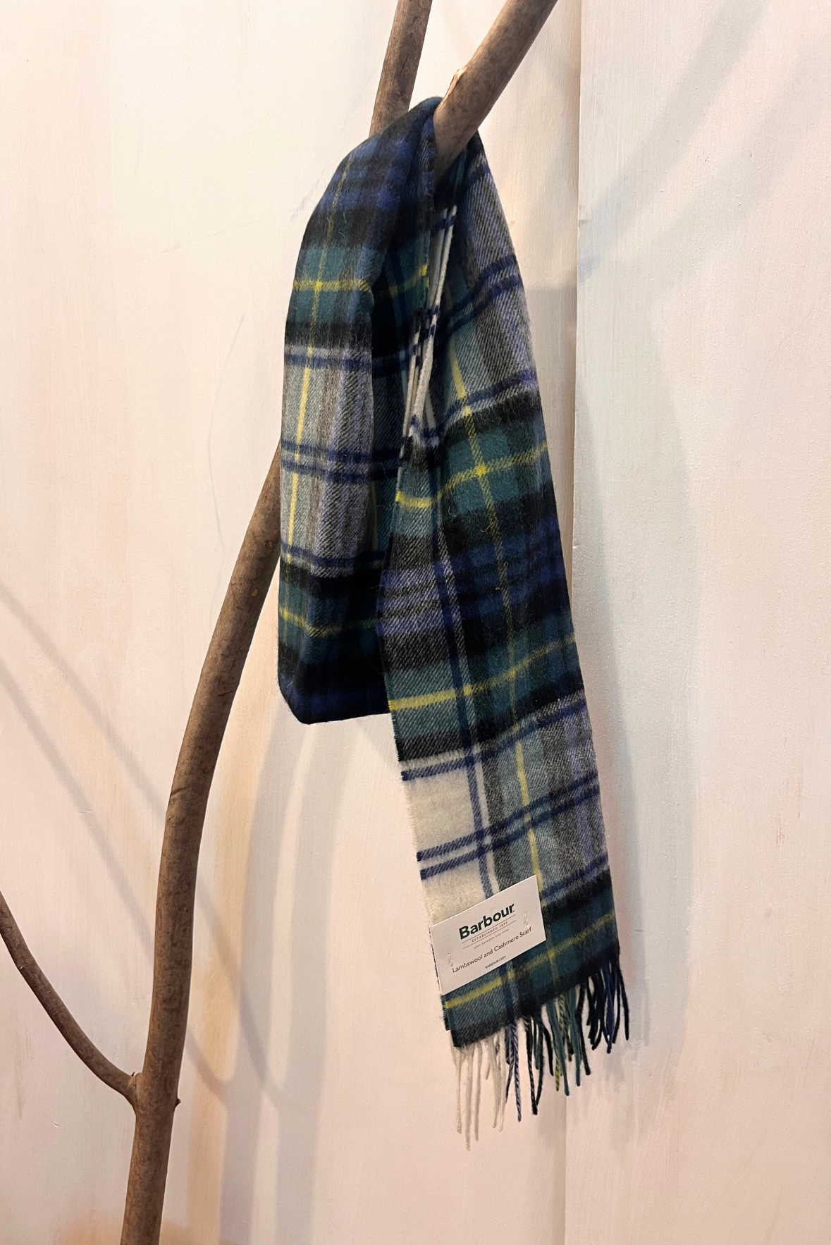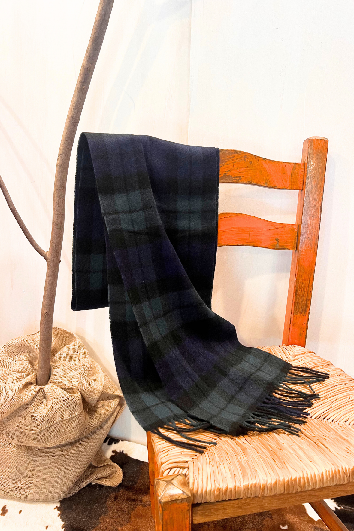 Sciarpa a fantasia scozzese con frange in lana misto cachmere. Misure: 184x52cm. Composizione: 95% lana, 5% cachmere
