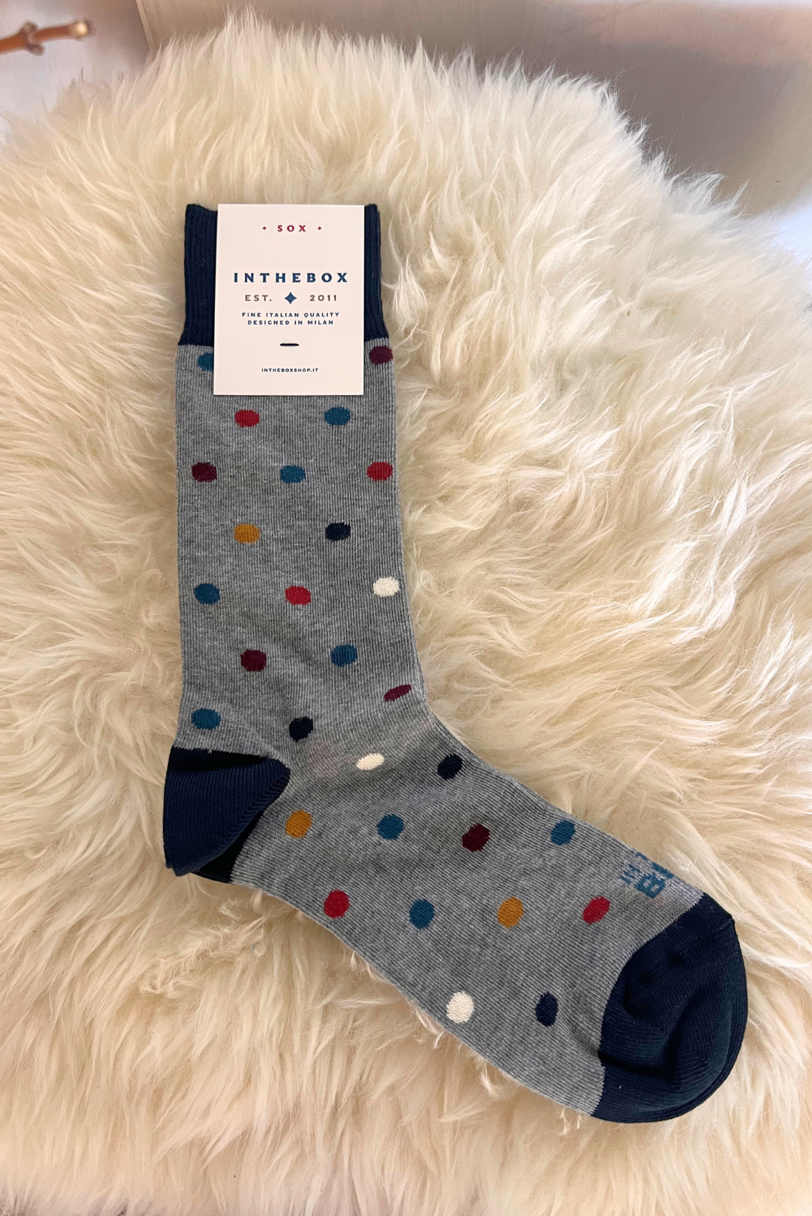 Calzino a pois. Taglia unica (veste dal 36 al 40It). Composizione 80% cotone, 18% poliammide, 2% elastan