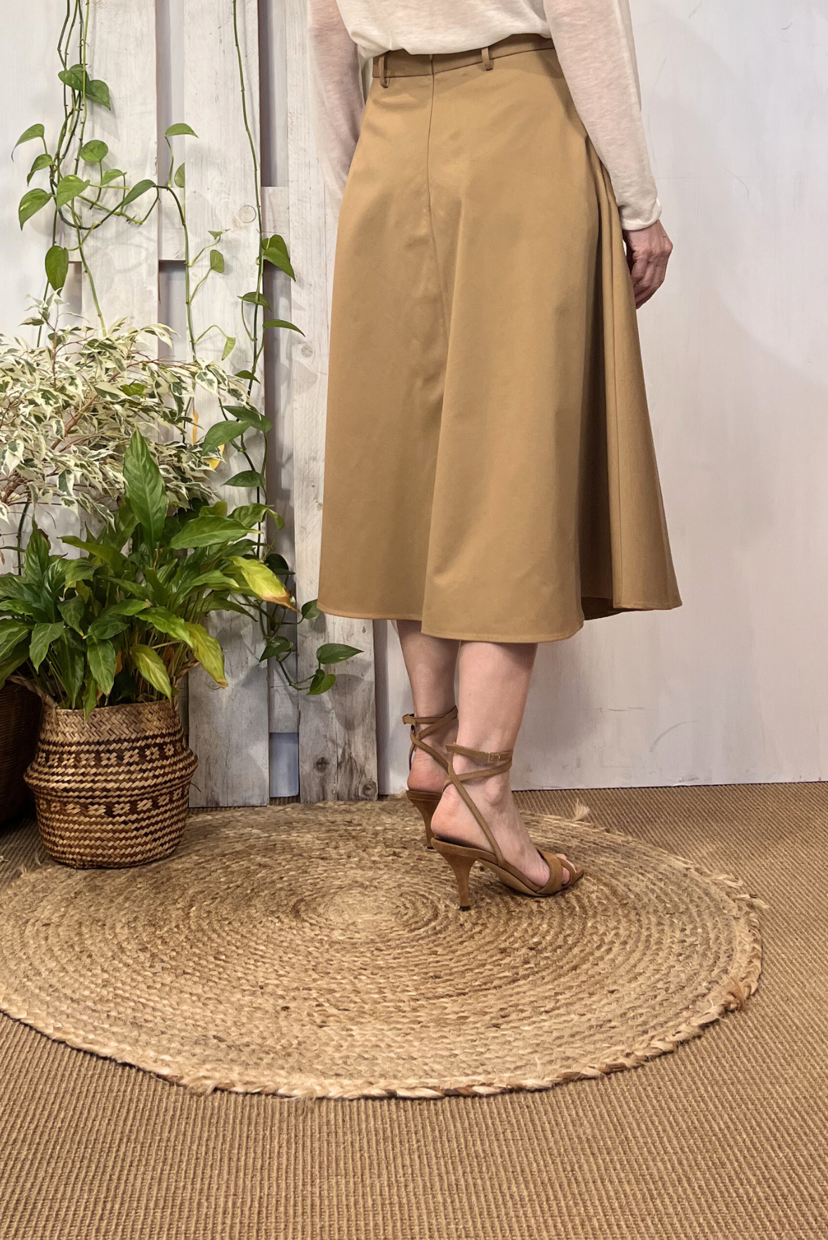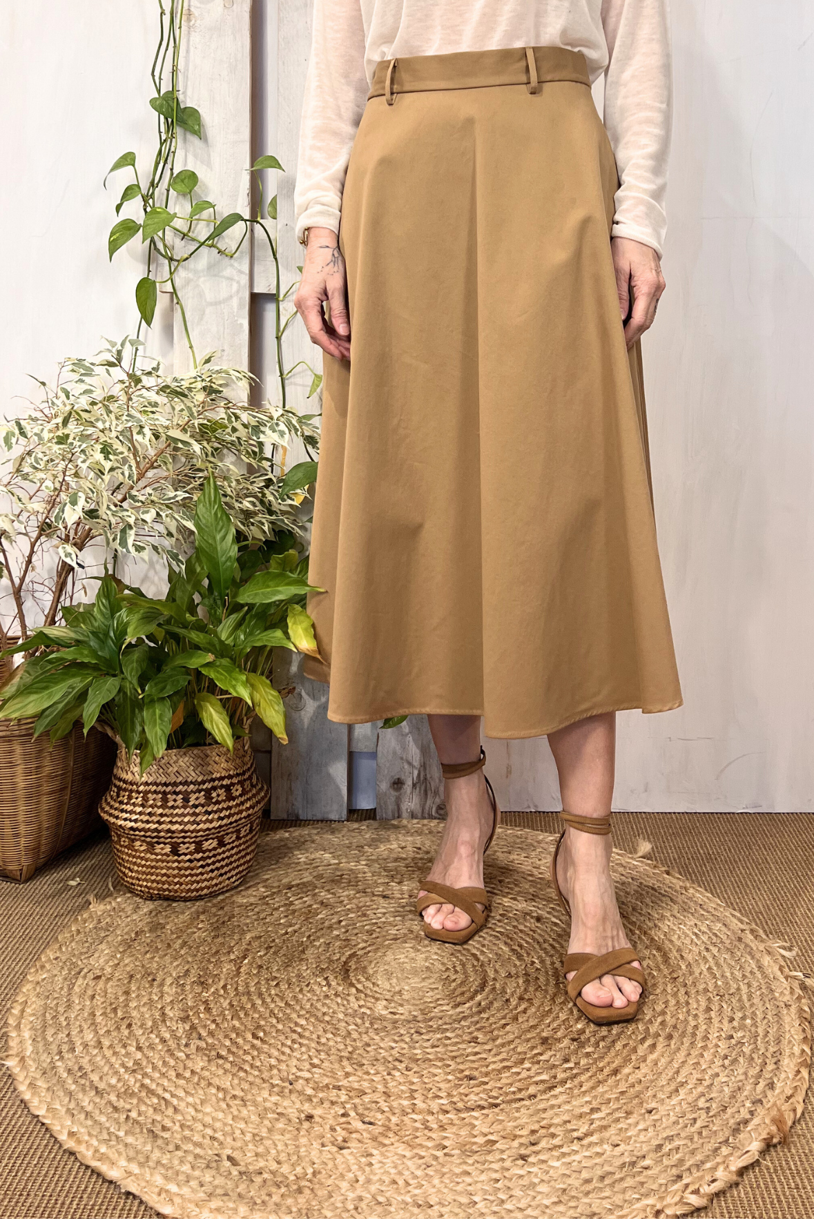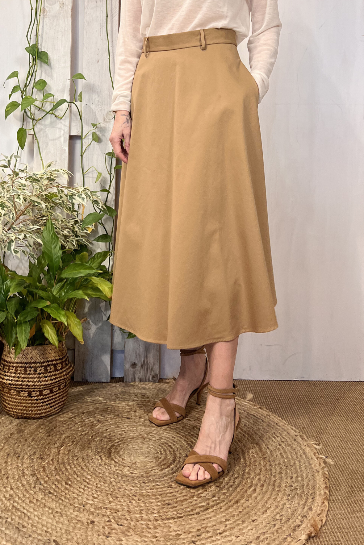 Gonna midi svasata in tela pesante. Vita alta. Passanti in vita. Due tasche laterali a scomparsa. Chiusura con zip nella parte posteriore. Interno sfoderato. Vestibilità regolare (taglia indossata 40 su una 40IT). Composizione 100% cotone