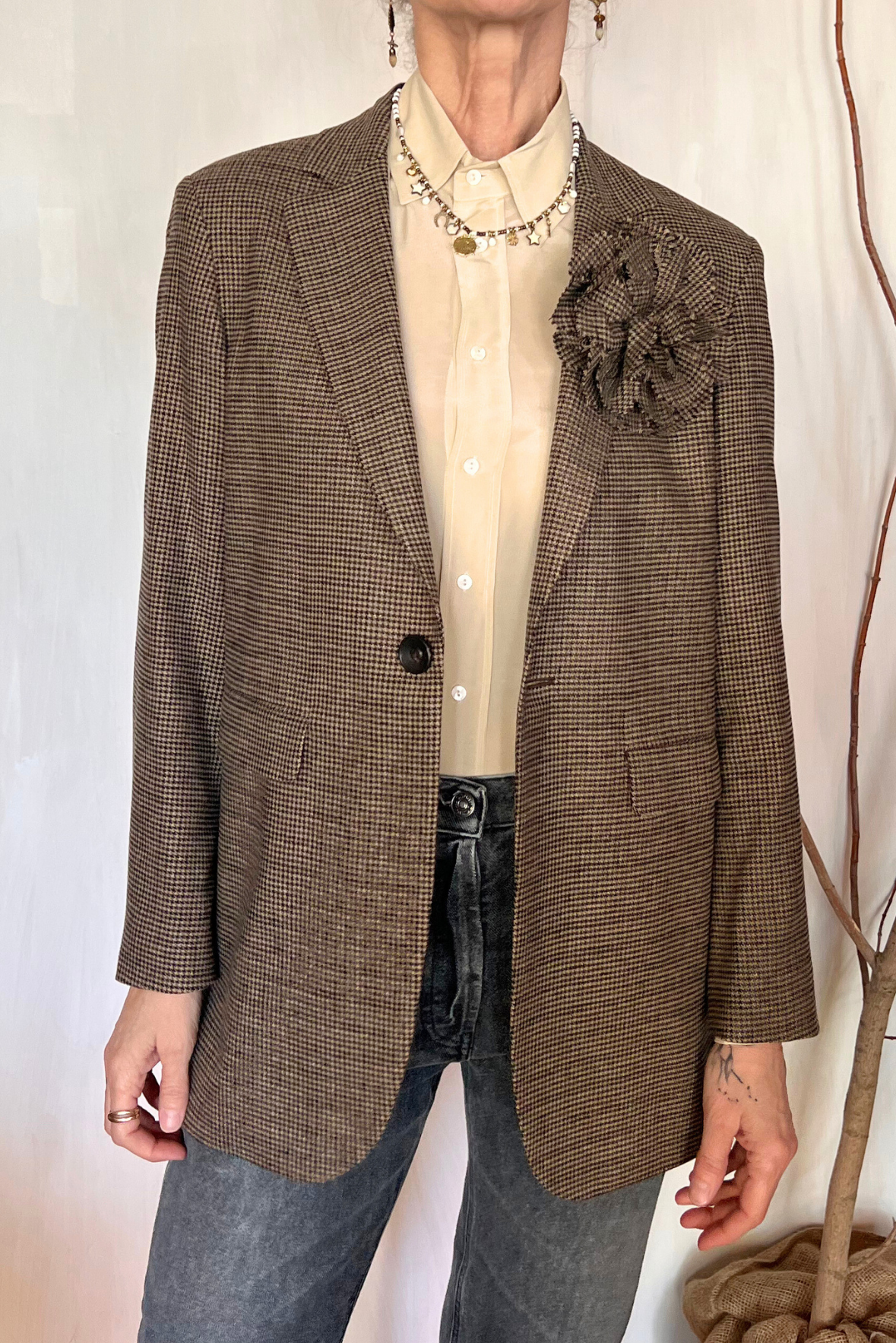 Spilla fiore in tessuto di lana e viscosa. Diametro 14cm.