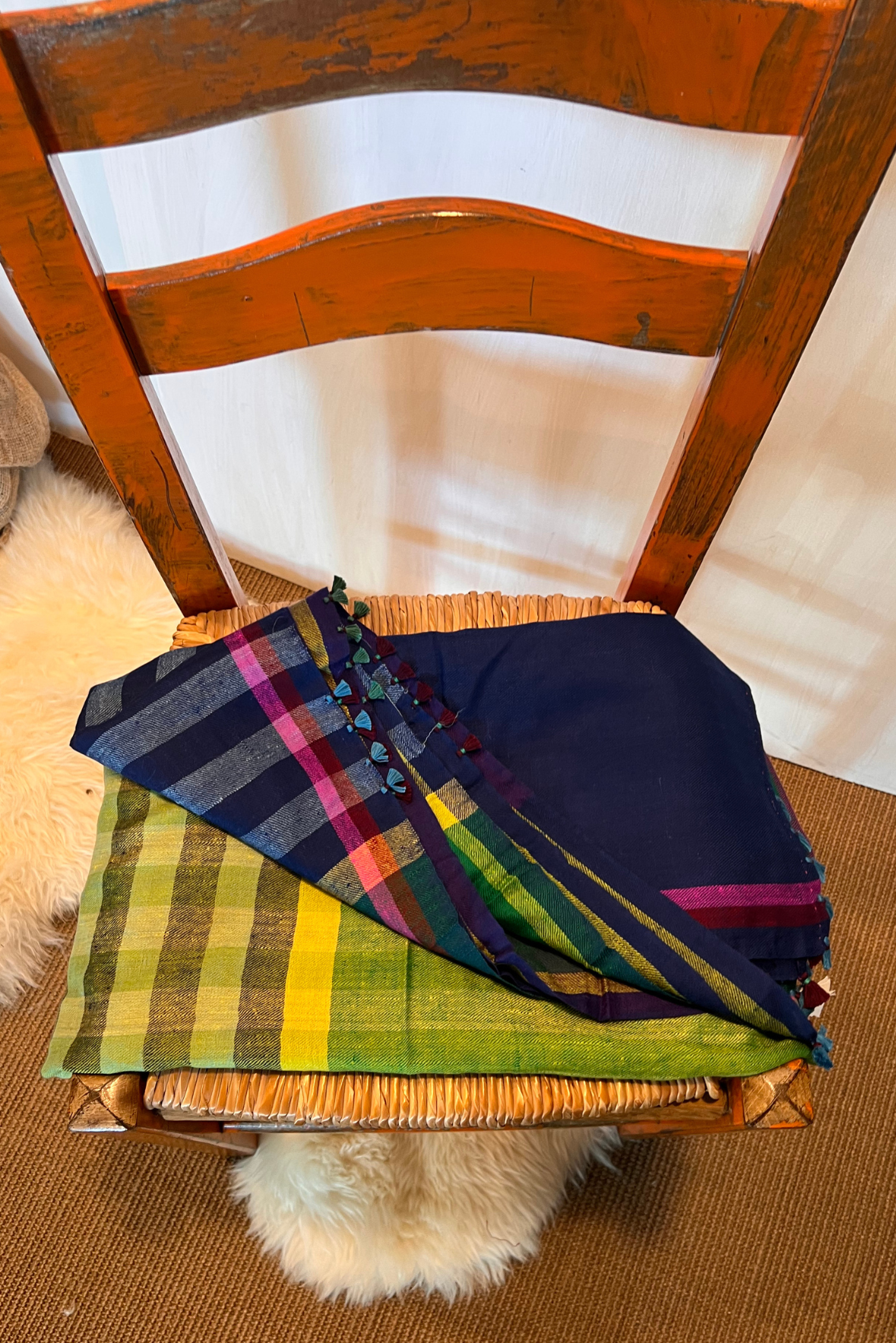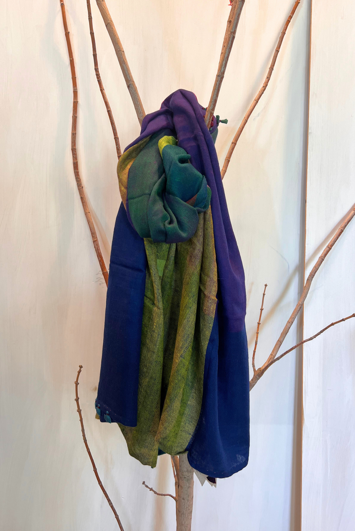 Sciarpa fantasia patchwork in cachmere con nappine colorate a contrasto. Composizione 100% cachmere. Misure: 200x100cm