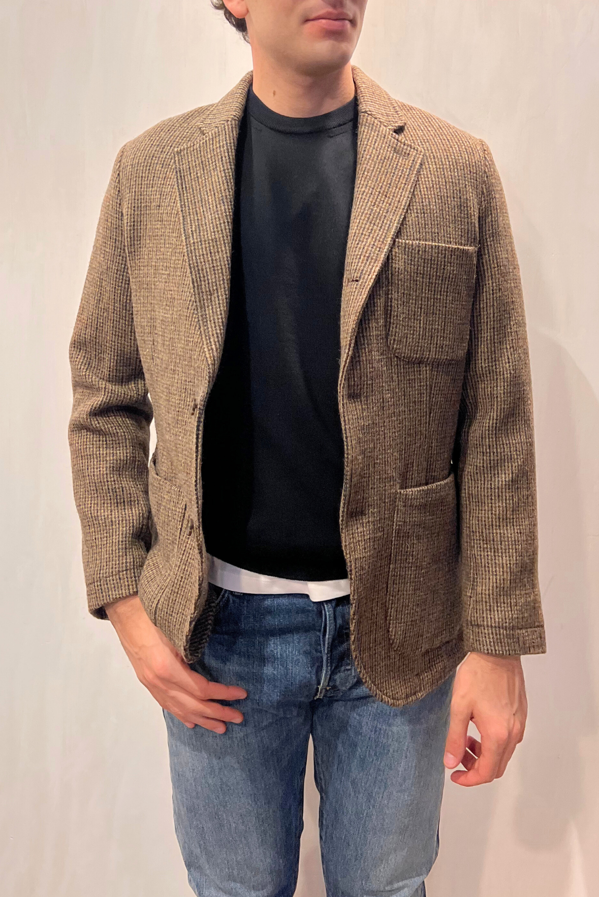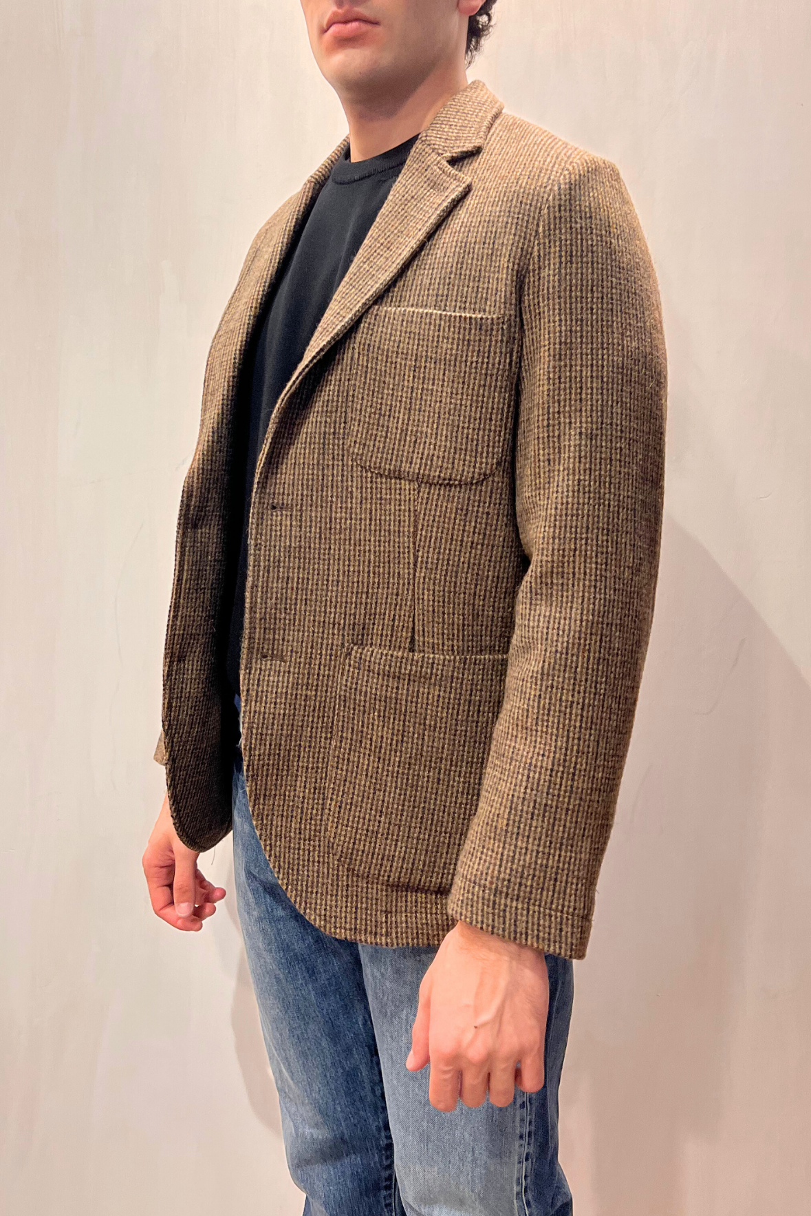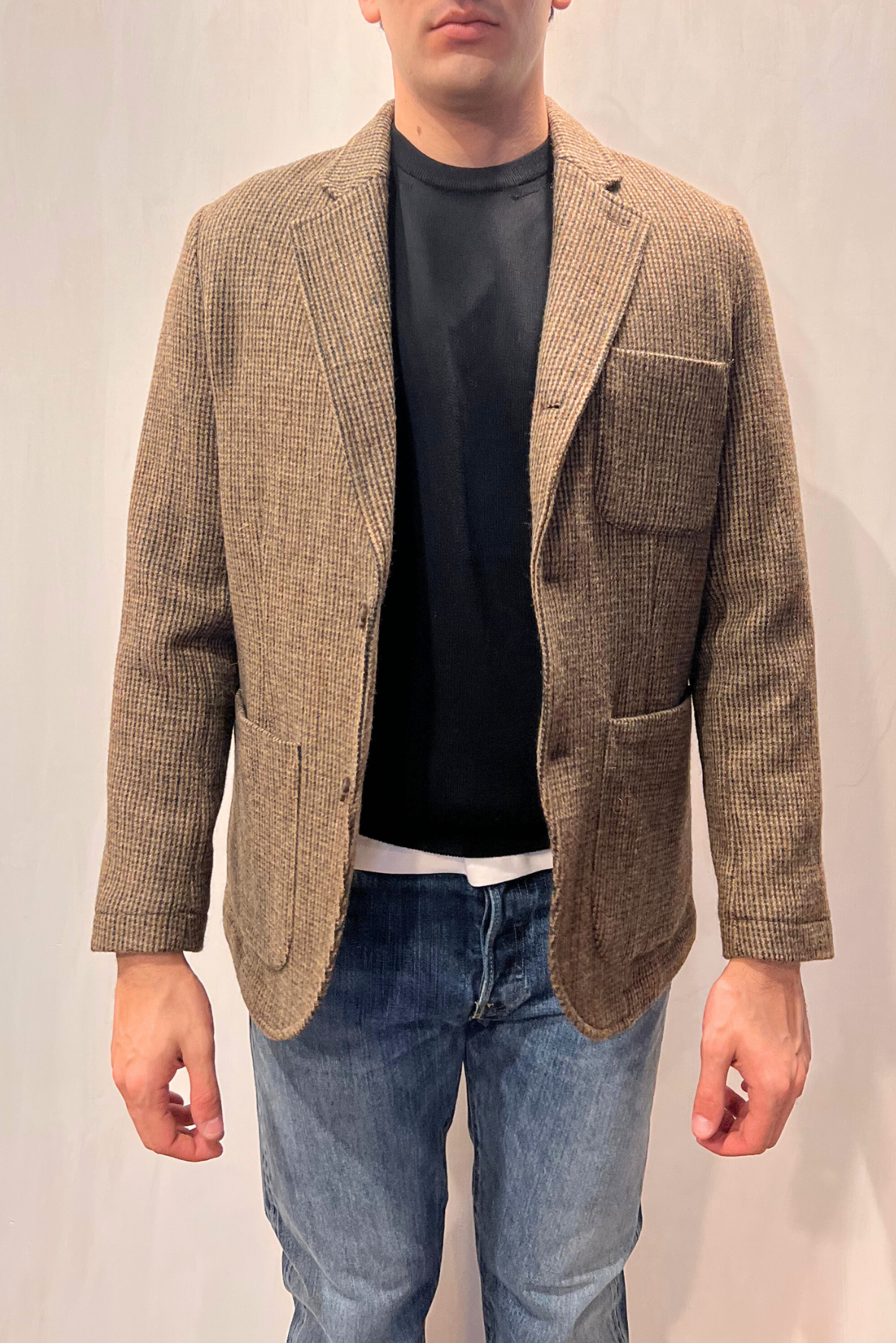 Giacca a un petto e due bottoni a fantasia check in lana. Due tasche anteriori e una sul petto. Spacco posteriore. Interno sfoderato. Vestibilità morbida. Composizone 100% lana