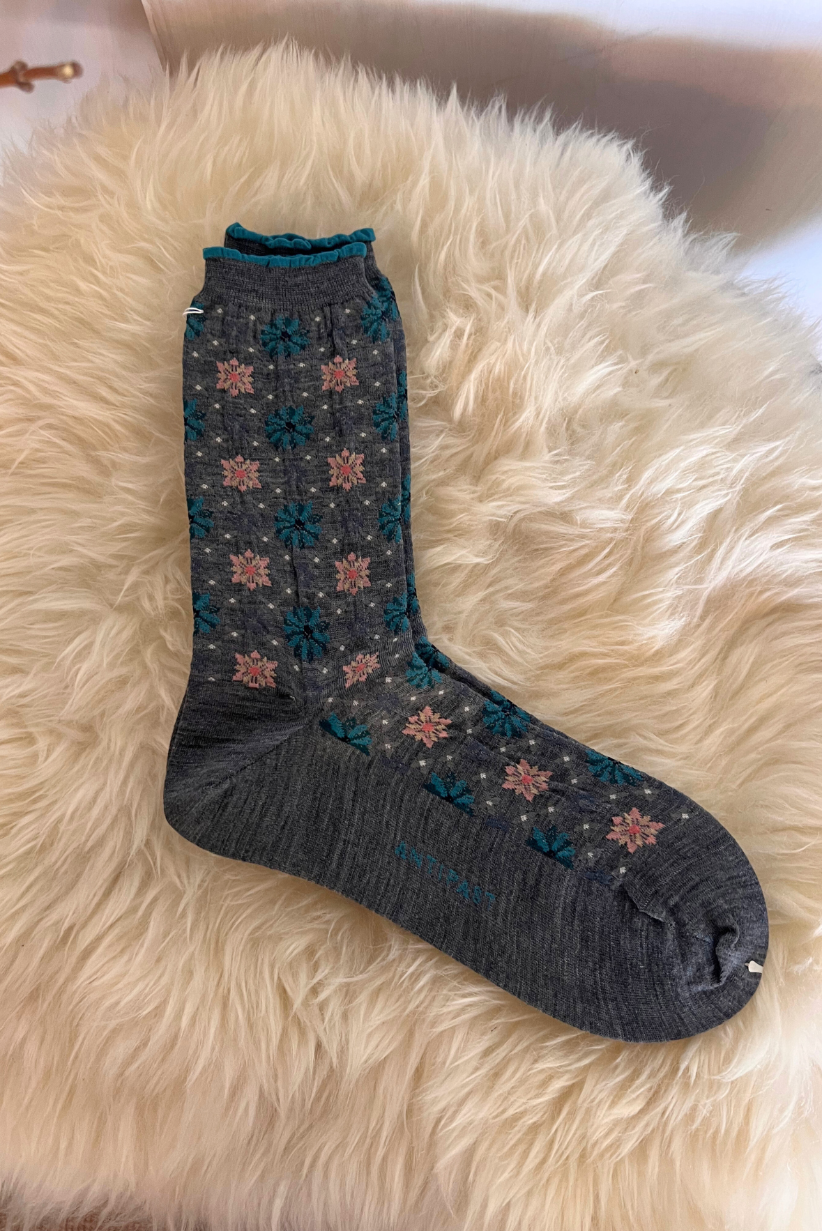 Calzino a fantasia. Taglia unica. Composizione 70% lana, 30% nylon