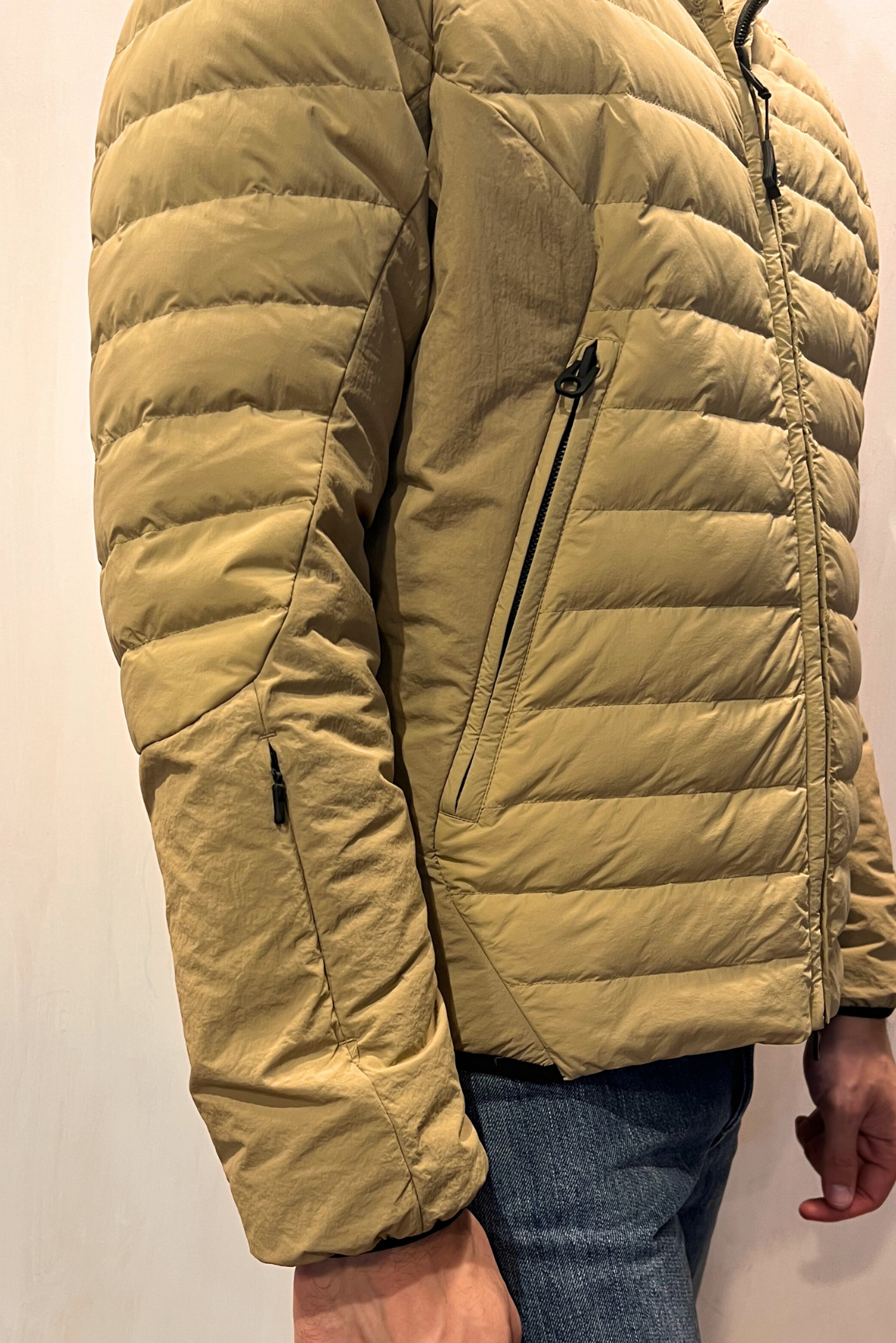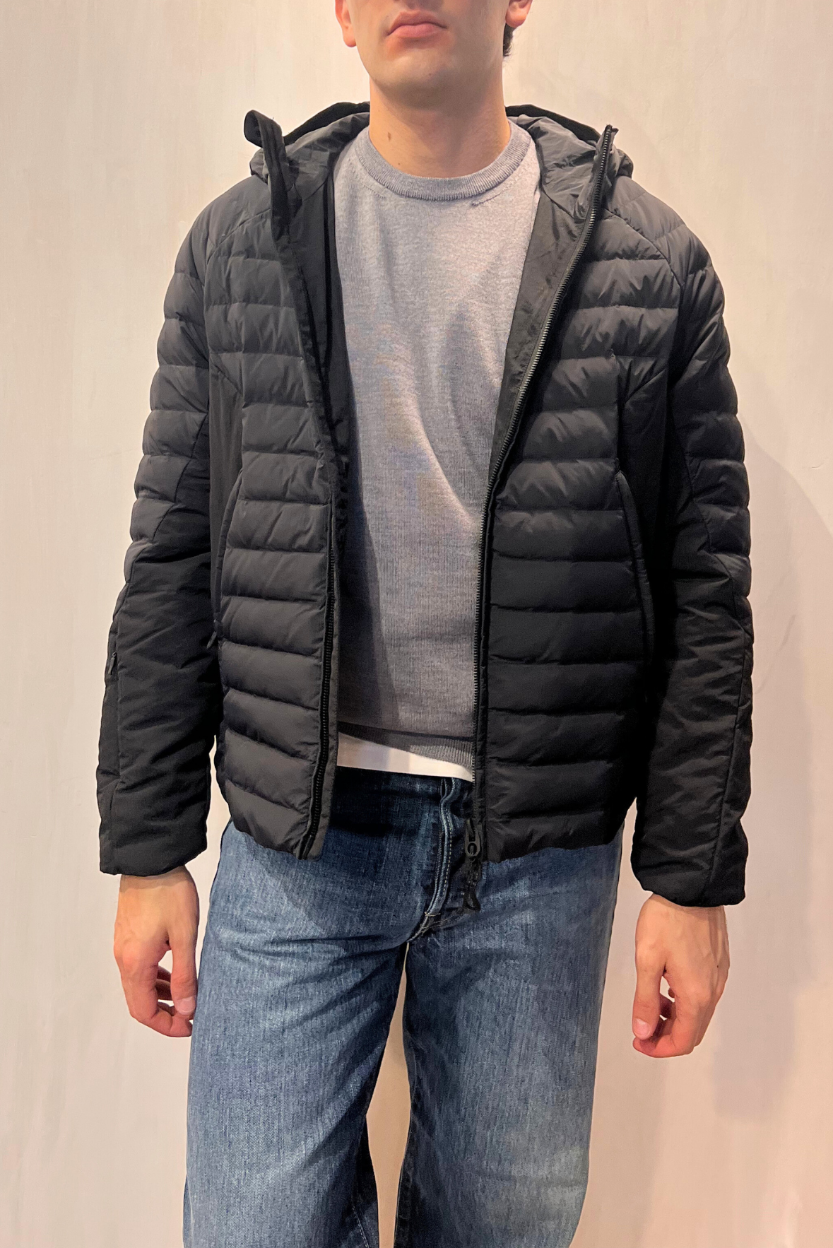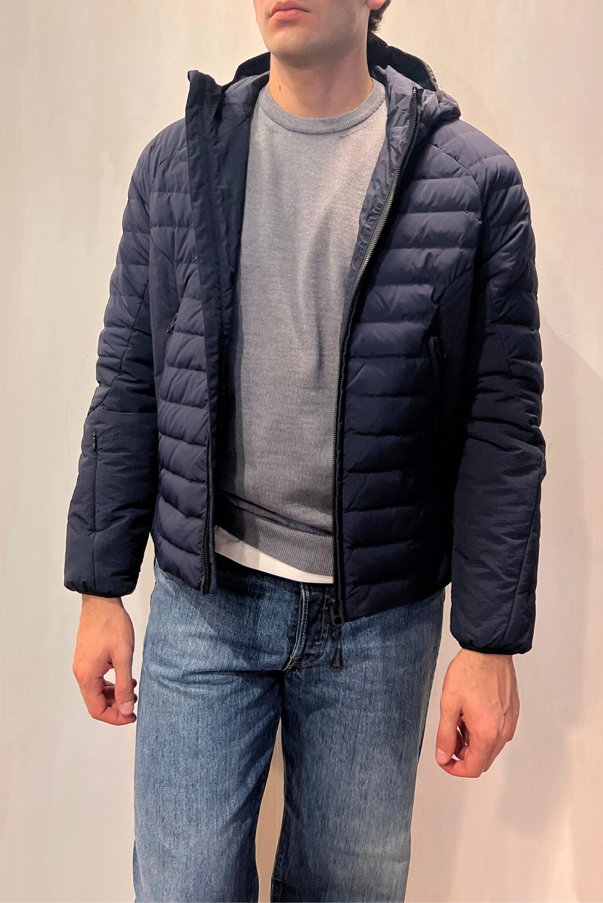 Piumino corto con cappuccio e chiusura con zip tono su tono. Due tasche riscaldate laterali con chiusura zip. Polso elastico. Cappuccio regolabile. Tasca nascosta sul polso destro. Vestibilità regolare. Composizione 100% poliammide