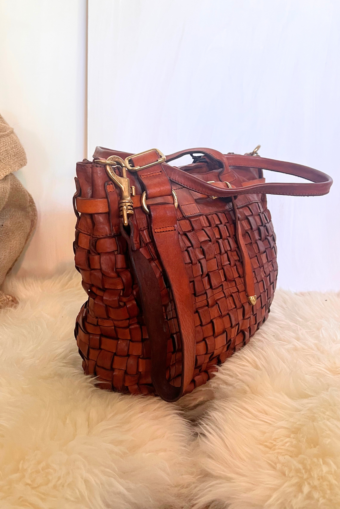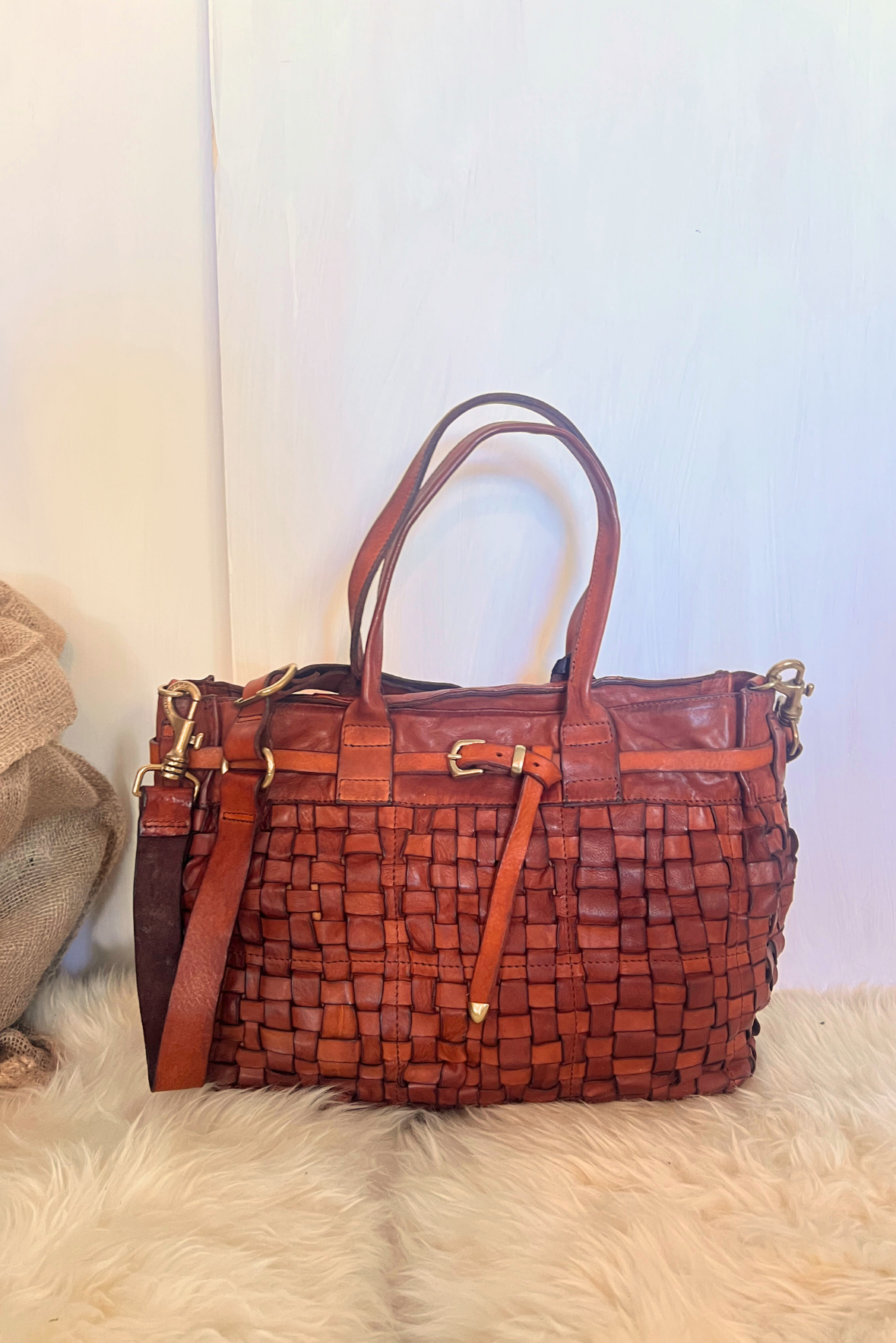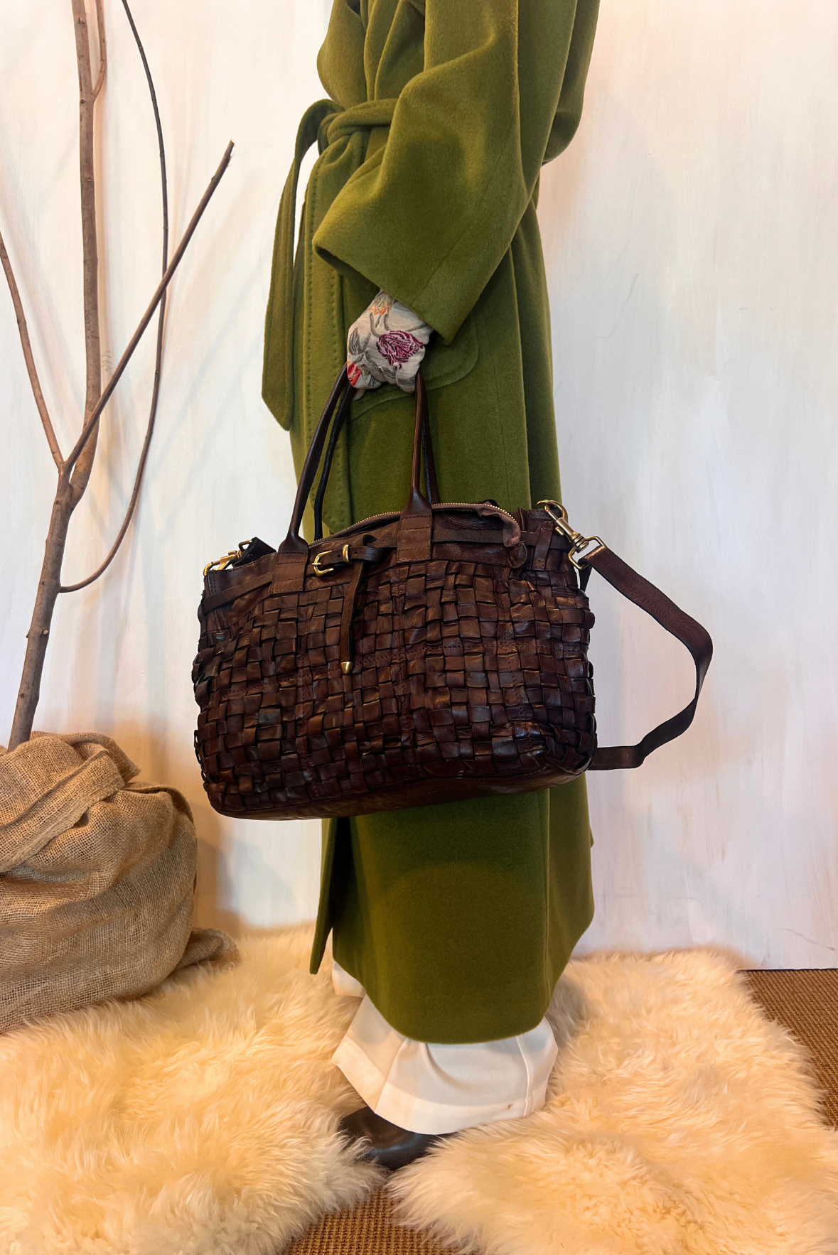 Borsa modello shopper in pelle intrecciata con manici e tracolla rimovibile e regolabile. Chiusura con zip e patta.Dettaglio cinturino con fibbia. Interno foderato. Tasca interna con zip. Inclusi Dustbag in tessuto e kit per la pulizia della pelle. Composizione 100% pelle. Misure: base 35 cm / in alto 39 cm, altezza 27 cm, profondità 10 cm (pelle morbida per cui ampiamente più capiente); manici 20 cm.