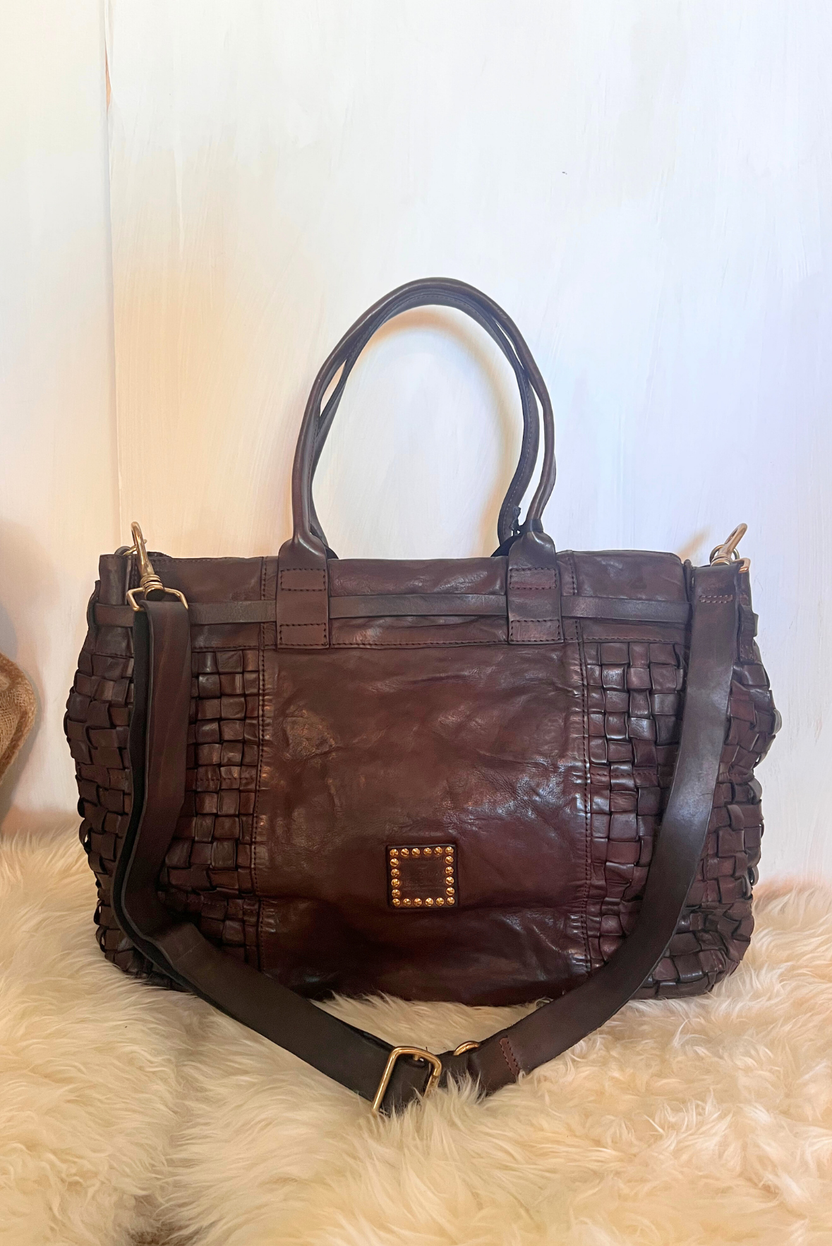 Shopper pelle intrecciata grande
