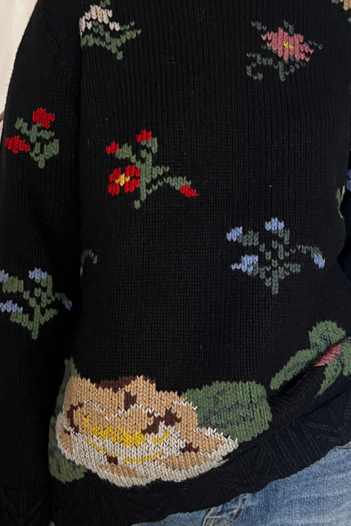 Maglia a girocollo con ricami floreali a contrasto all over. Vestibilità over (taglia indossata S su una 40IT). Composizione 80% lana, 20% poliammide