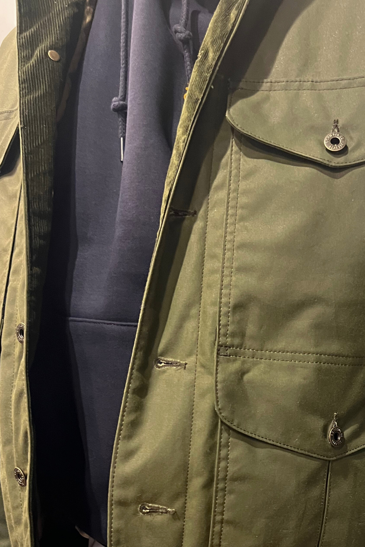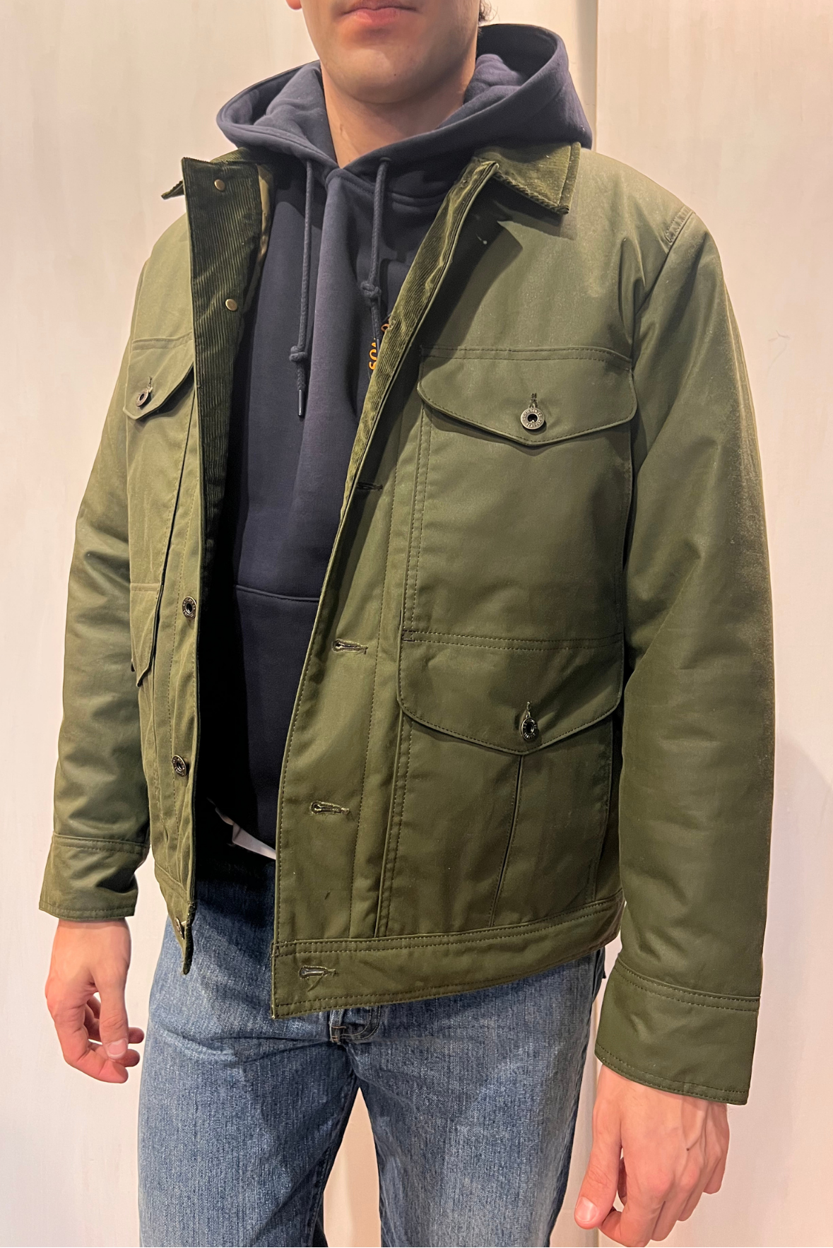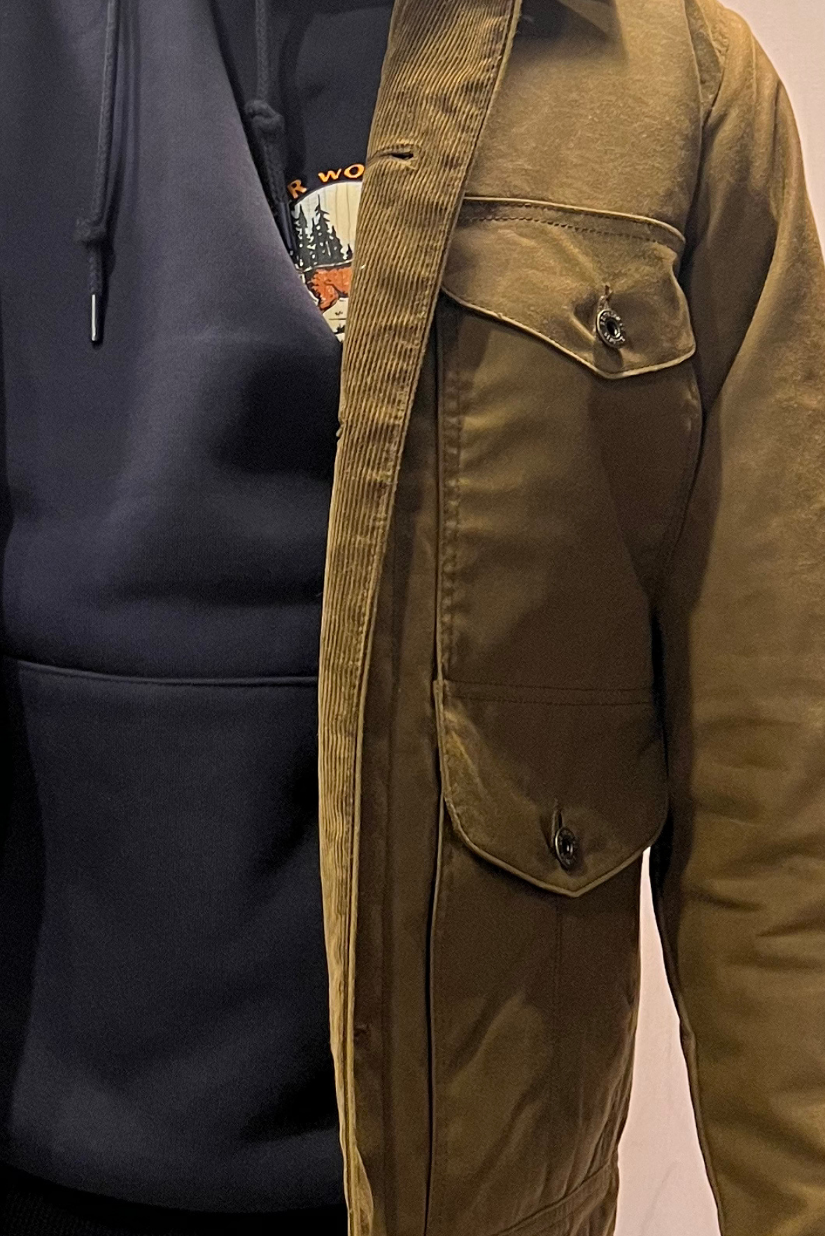 Giubbotto Journeyman in tessuto primaloft cerato altamente resistente antivento e antipioggia. Fodera in velluto a coste sottili sul colletto, all’interno della chiusura e dell’orlo offre un calore e un comfort impareggiabili. Chiusura frontale con bottoni. Quattro tasche capienti sul davanti con bottoni. Una tasca interna con bottone automatico. Interno trapuntato. Vestibilità regolare. Composizione 100% cotone