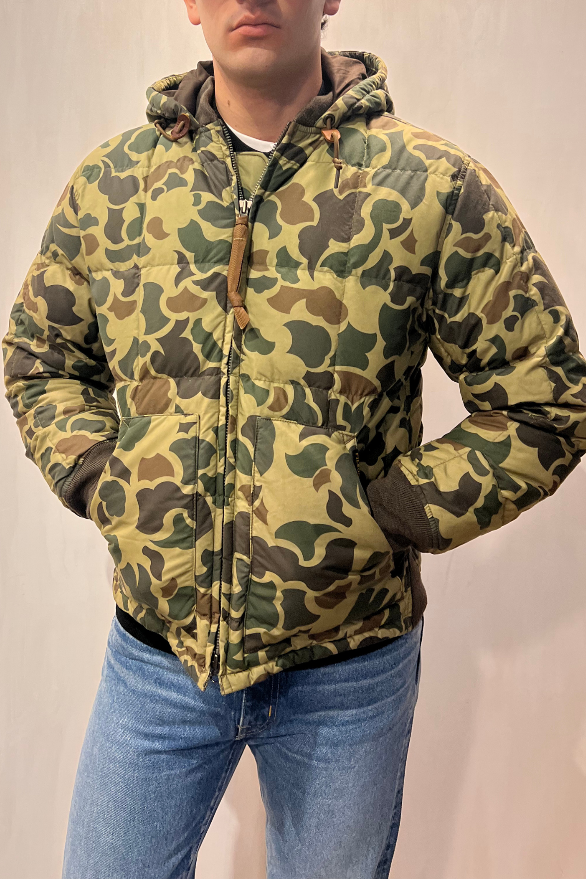 Giubbotto Waxed Down Jacket cerato in piuma d’anatra, realizzato in un cotone cerato da 184,2 g proveniente da una storica azienda scozzese. Strato isolante in piuma d’anatra da 650 FP di orgine etica, che, per il suo connubio tra calore e leggerezza, risulta imbattibile. Tasche a toppa sul lato anteriore foderate in materiale microscamosciato lavorato a maglia e di facile accesso. Polsini in misto lana premium a coste che sigillano il calore e bloccano il vento. Cappuccio regolabile con coulisse e cordoncini in pelle naturale. Chiusura con zip. Vestibilità morbida. Composizione 100% cotone