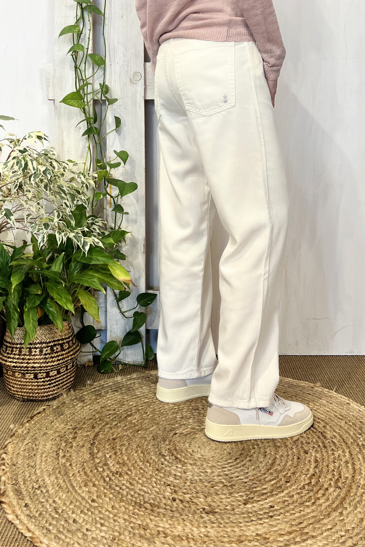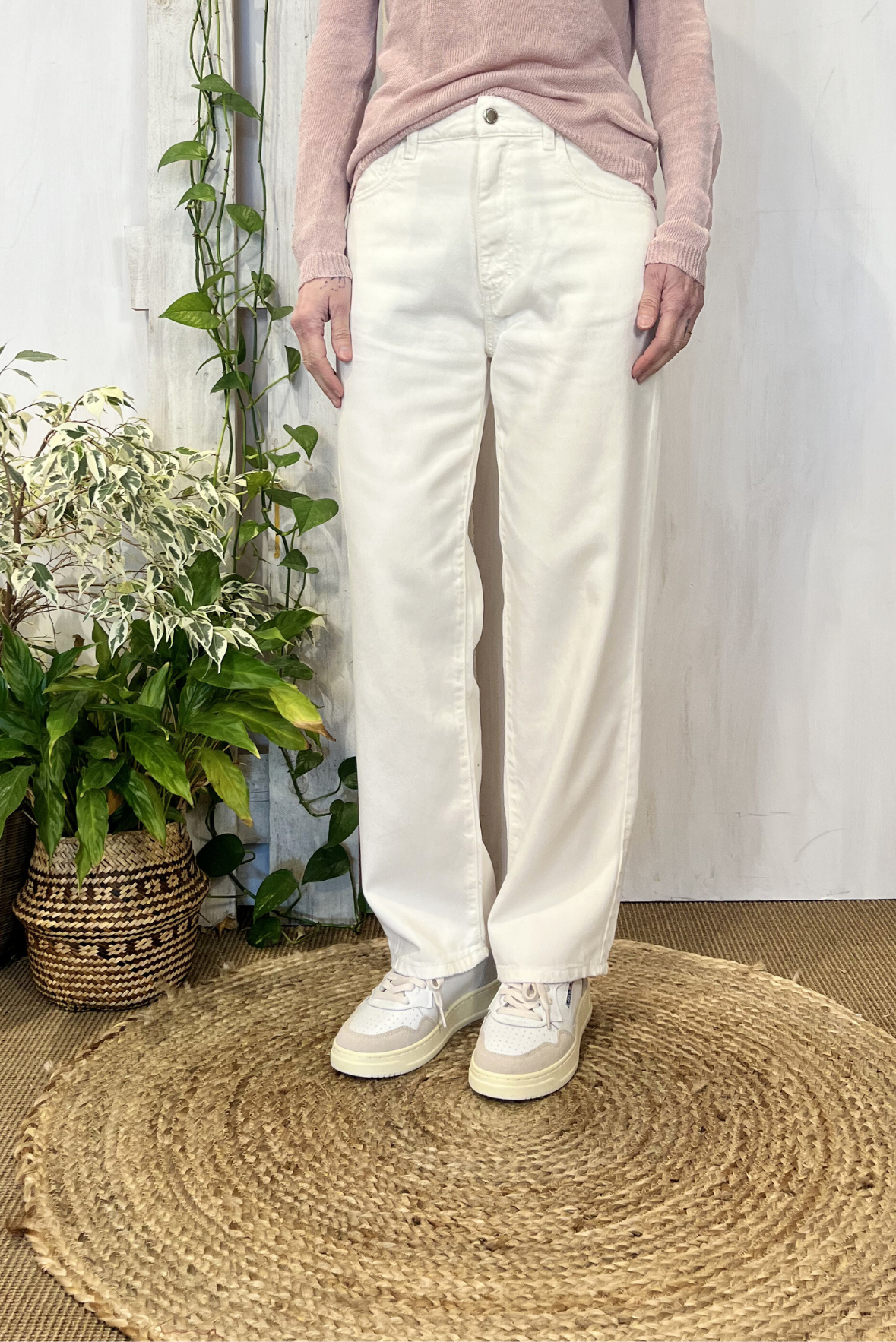 Jeans 5 tasche modello Jill. Gamba dritta e vita alta. Iconico ricamo "stelline" nella tasca posteriore. Veste mezza taglia in meno (taglia indossata 27 su una 40IT). Composizione 100% cotone