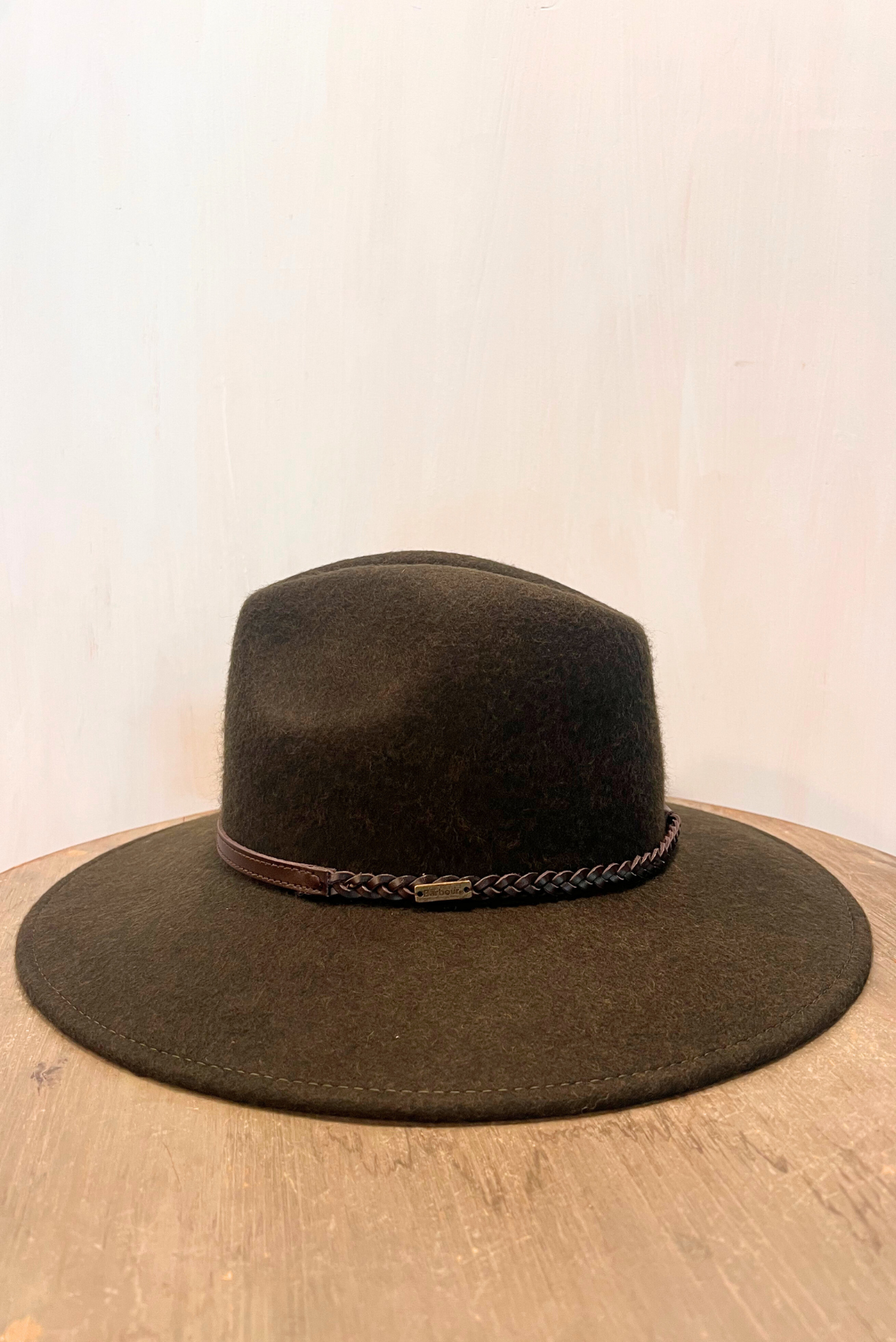 Cappello in feltro a tesa larga con dettaglio cinturino in pelle intrecciata con logo. Composizione 100% lana