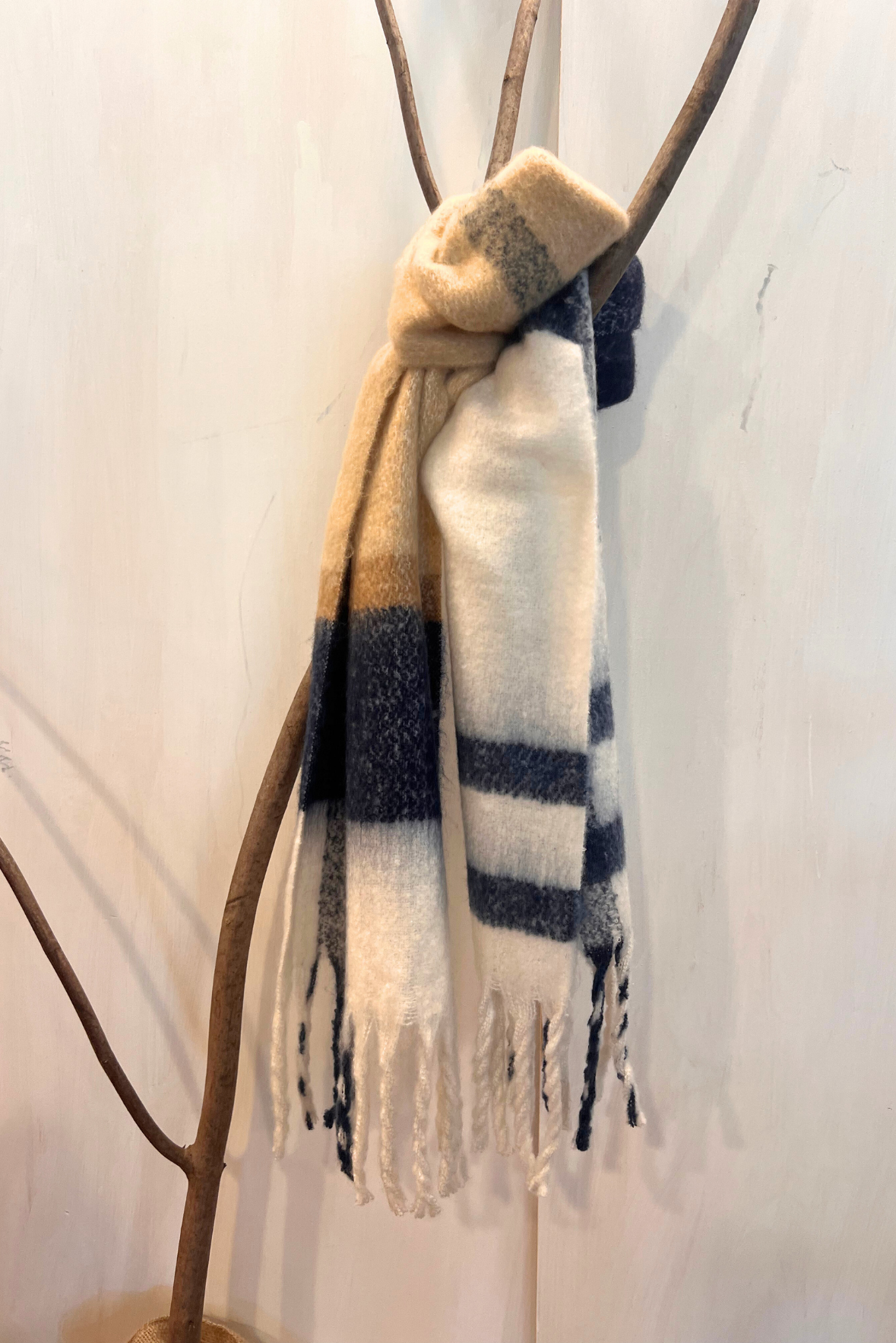 Sciarpa a fantasia scozzese con frange. Misure: 186 x 41cm. Composizione 100% poliestere