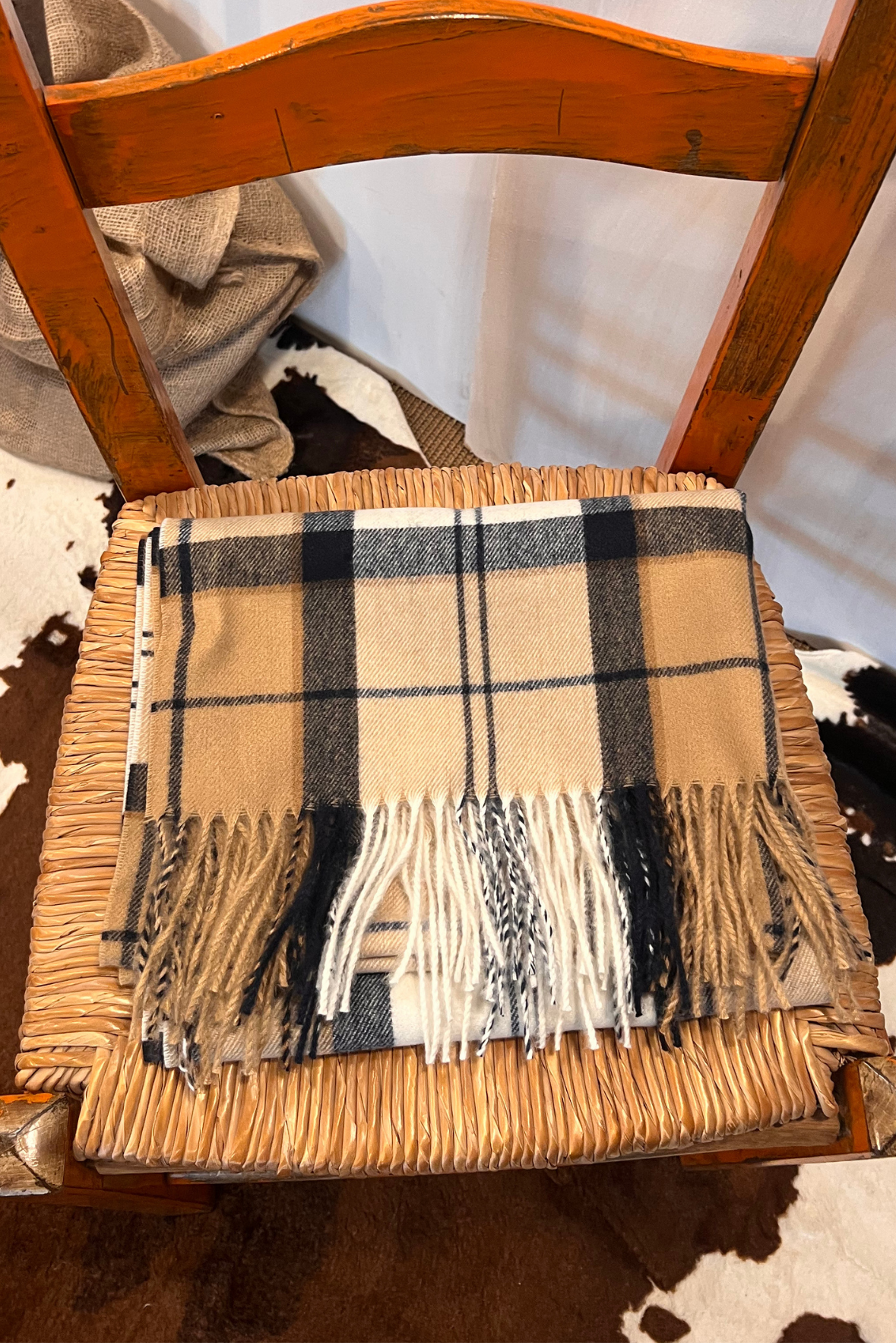 Sciarpa a fantasia scozzese con frange. Misure: 184x61cm. Composizione 100% poliestere riciclato