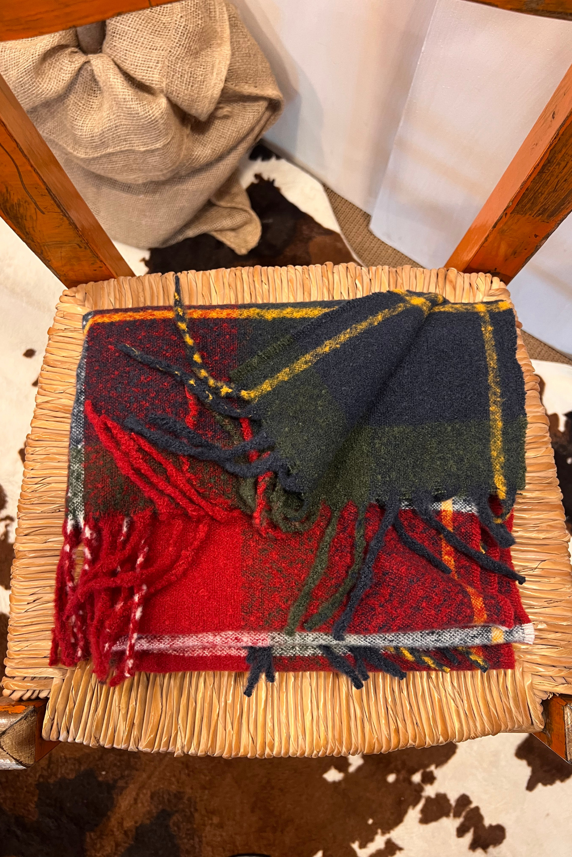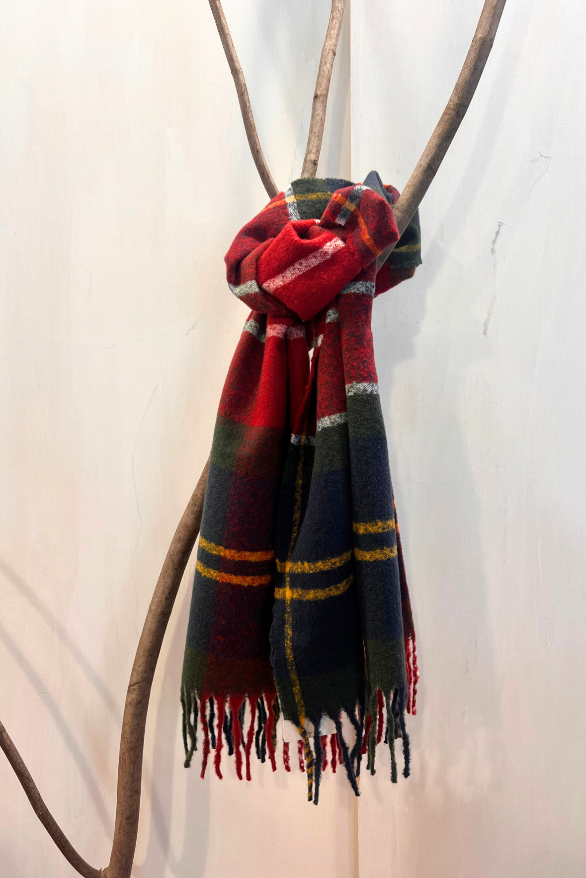 Sciarpa a fantasia scozzese con frange. Misure: 196x52cm. Composizione: 50% poliestere riciclato, 50% poliestere