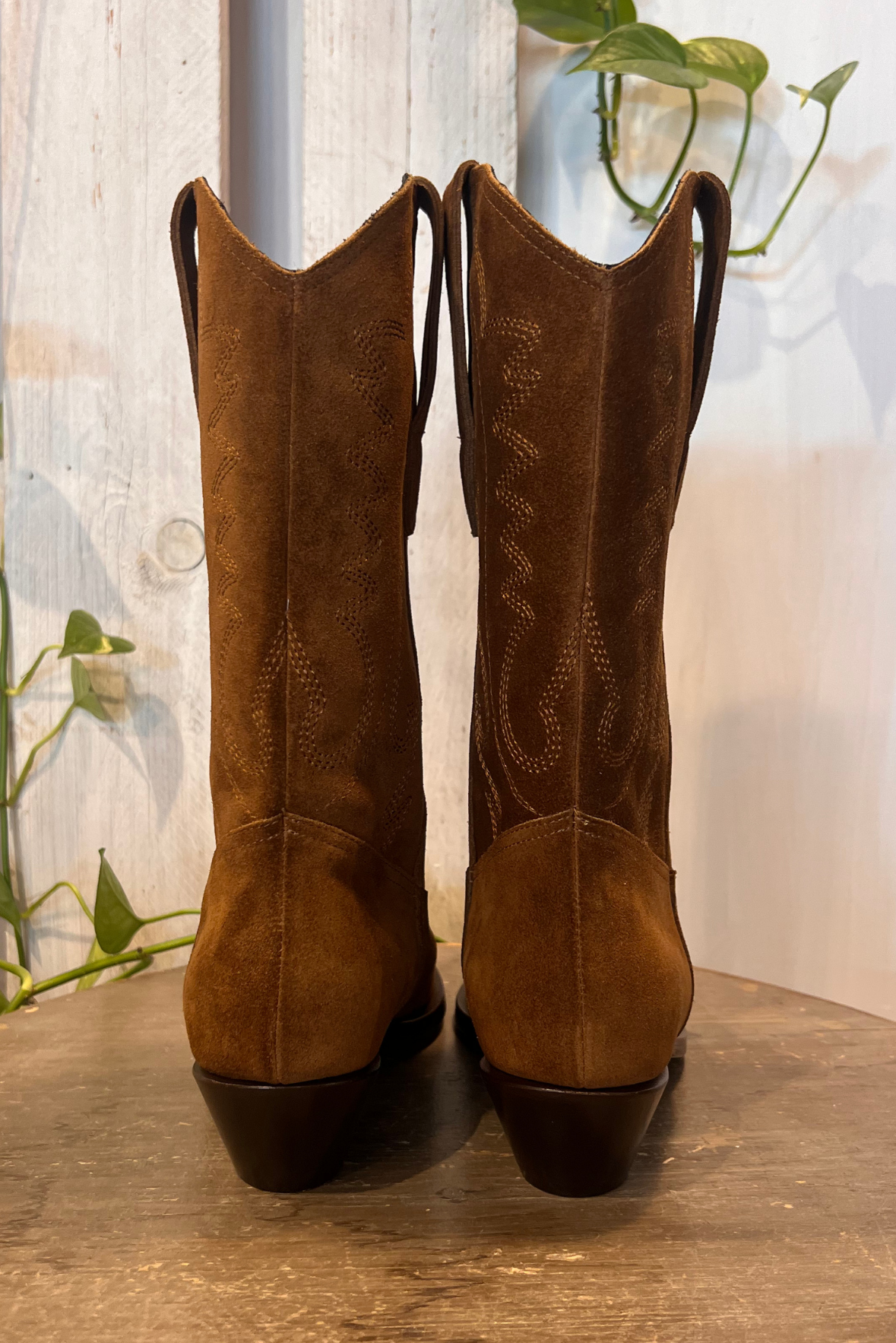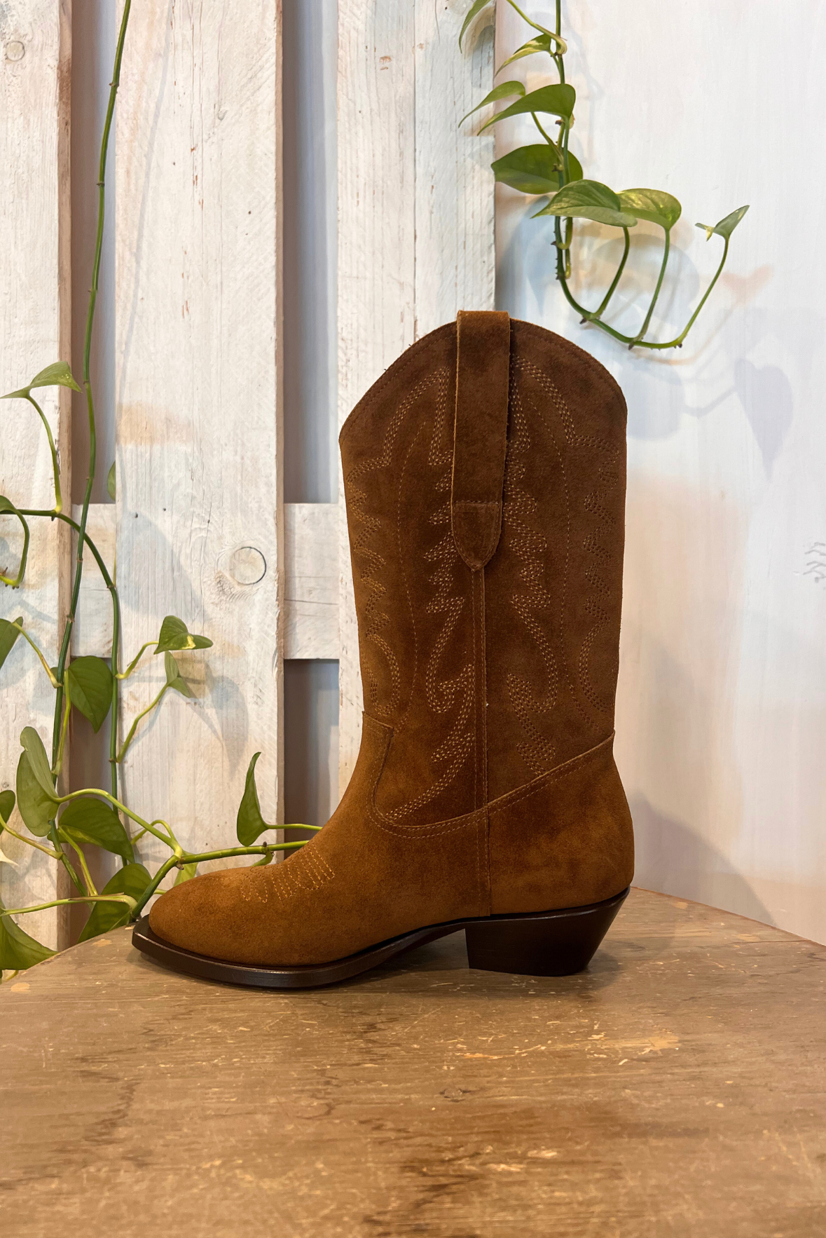 Stivale modello Texano in pelle scamosciata. Altezza tacco 3cm. Calzata regolare. Suola in vero cuoio. Composizione 100% pelle. Made in Italy