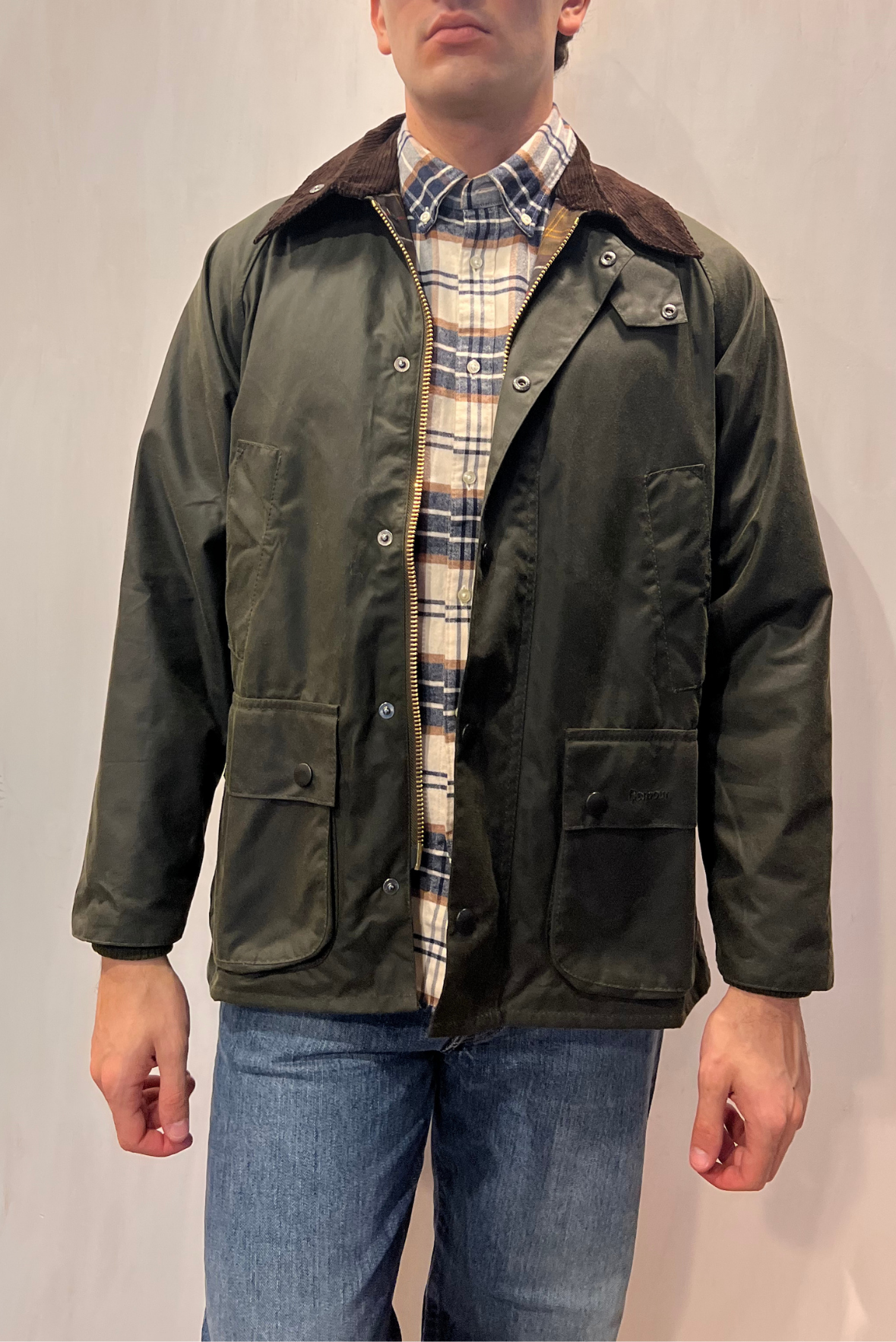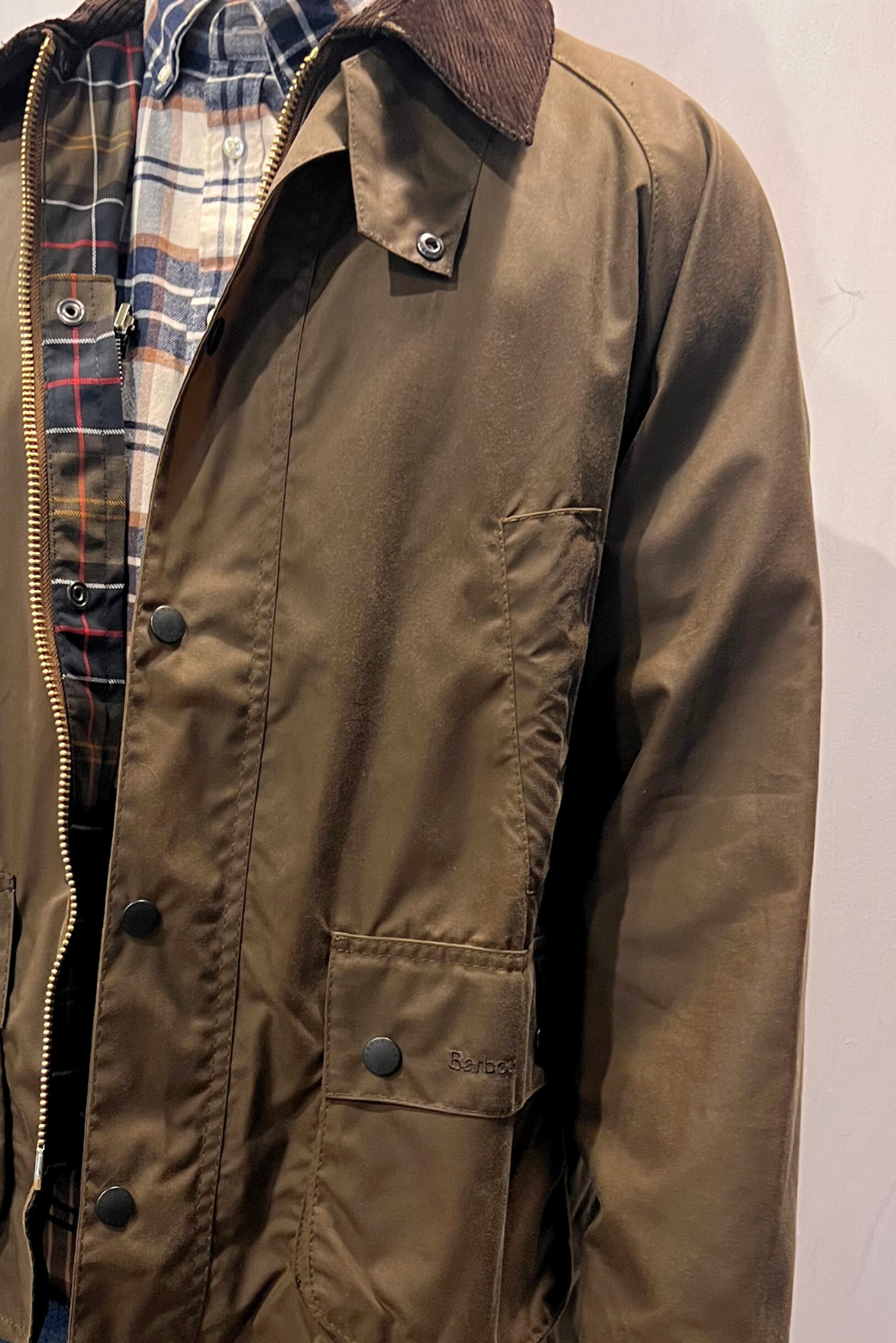 Giubbotto modello Classic Bedale Wax Jacket. Giacca cerata di medio peso. Chiusura con cerniera frontale a doppio cursore e patta con bottoni automatici. Colletto in velluto a coste. Due tasche scaldamani foderate in fustagno e due ampie tasche a soffietto per la massima praticità con chiusura con bottoni automatici e patta. Realizzato in Sylkoil da 6 once di Barbour per resistenza e resistenza alle intemperie. Compatibile con le fodere con cerniera Barbour e con i cappucci opzionali. Fodera a contrasto in 100% cotone. Polso con elastici. Vestibilità regolare. Composizione Esterno: 100% cotone cerato; Fodera manica: 100% cotone