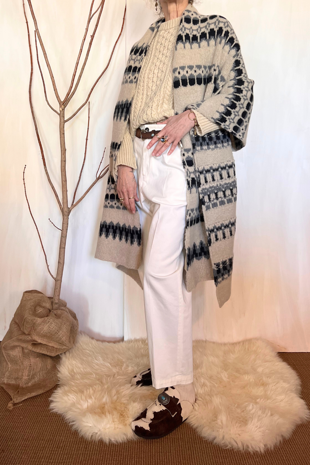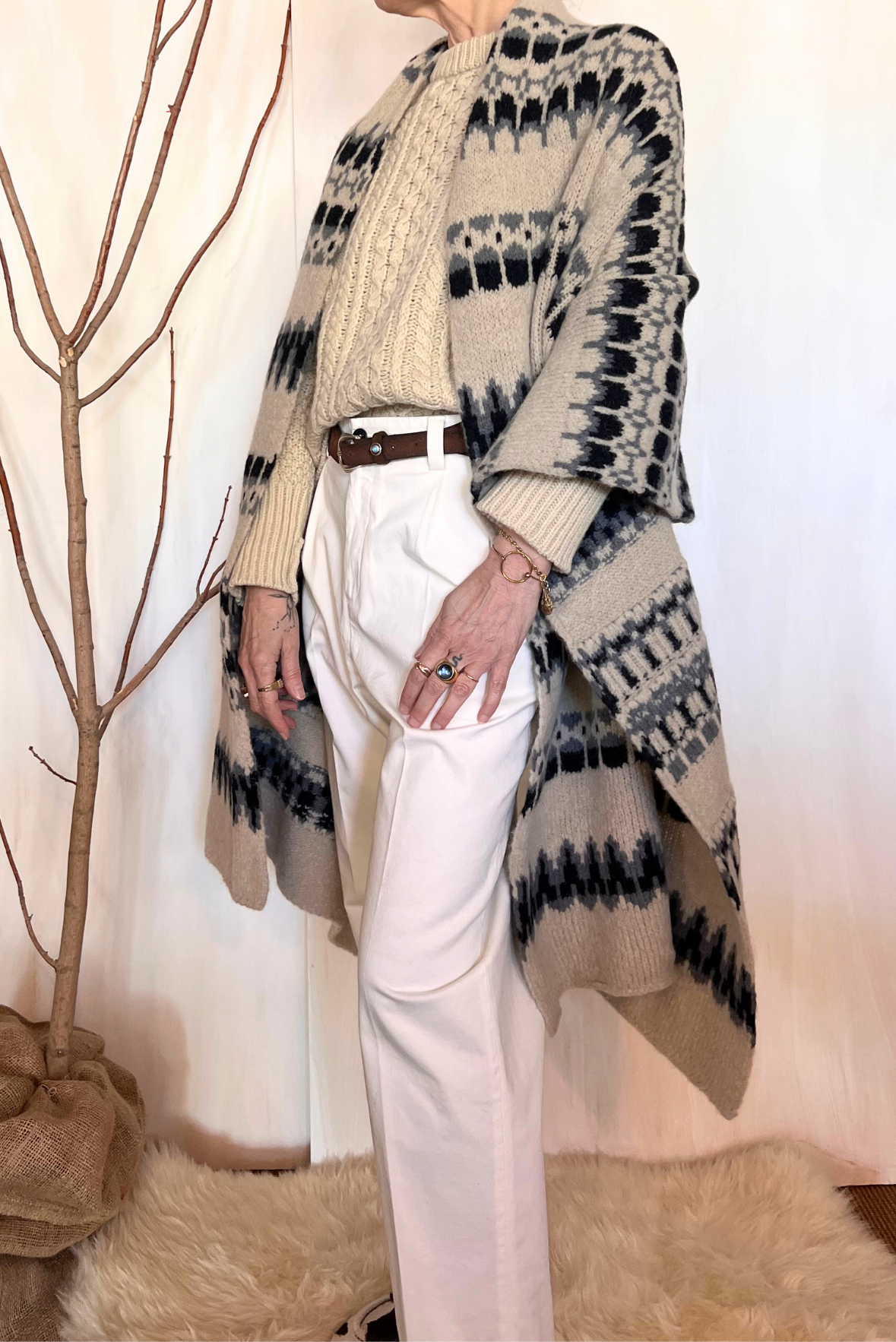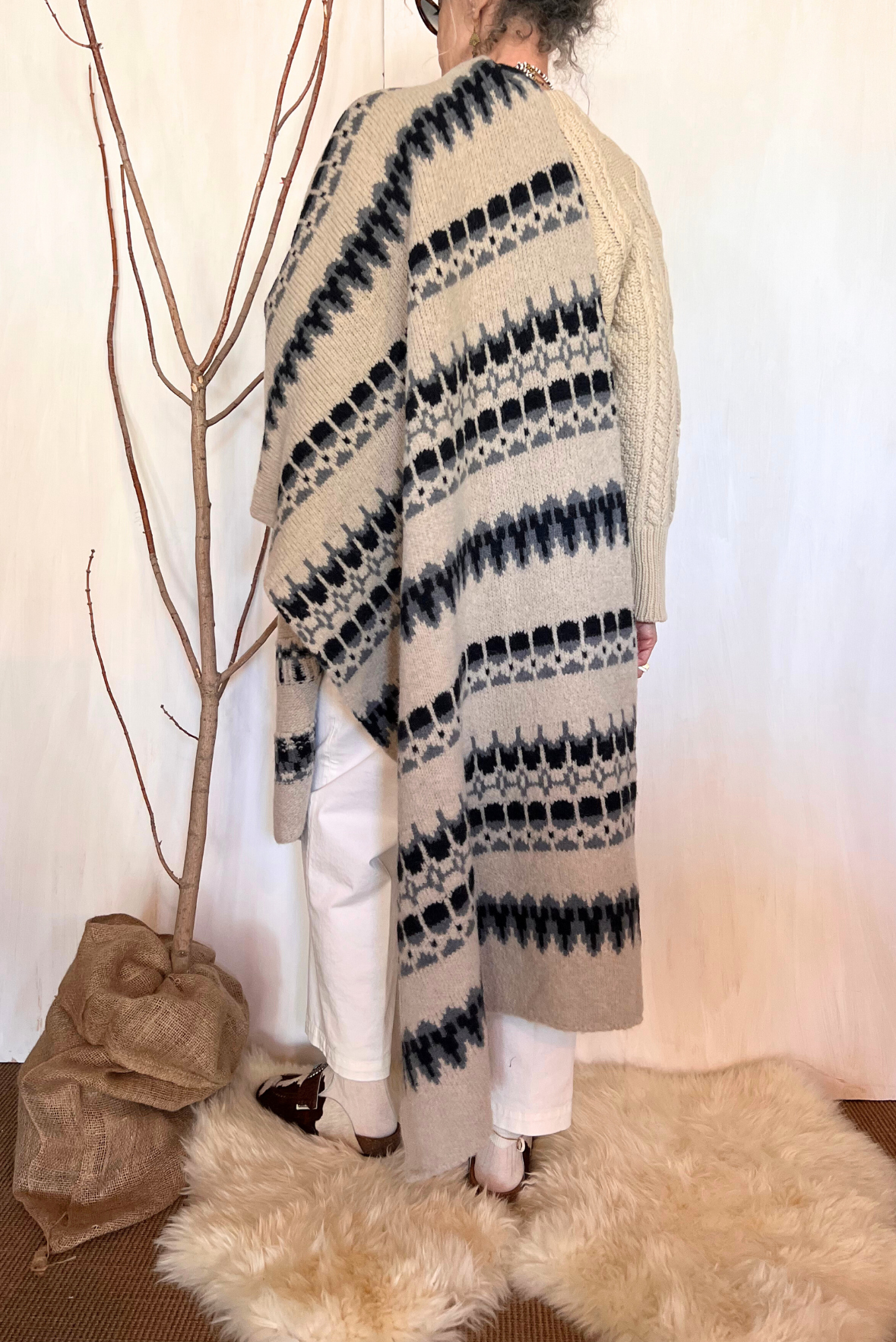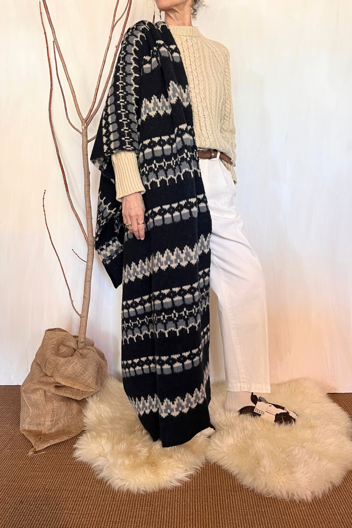 Maxi sciarpa a tinta unita con motivi jaquard. Composizione: 51% alpaca, 25% poliammidica, 22% lana, 2% elastan. Misure: 200x70cm